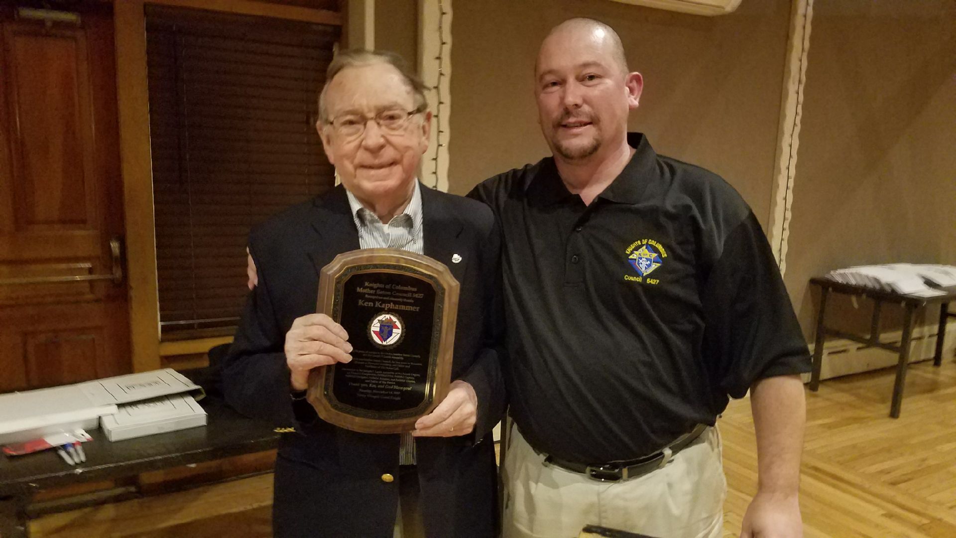 Approximately 50 members joined Kaphammer to honor him with a plaque to celebrate his contributions to Knights of Columbus. Kaphammer joined the Knights when he turned 18.