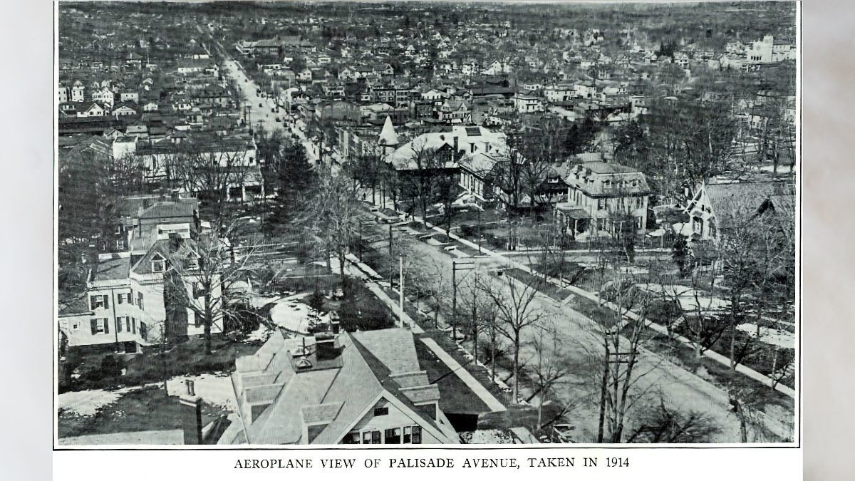 ENGLEWOOD—An aerial photo of Englewood provides a glimpse into how the city looked on a winter’s day back in 1914. The road running through this picture, at right, is Palisade Avenue. The view is toward the northeast.