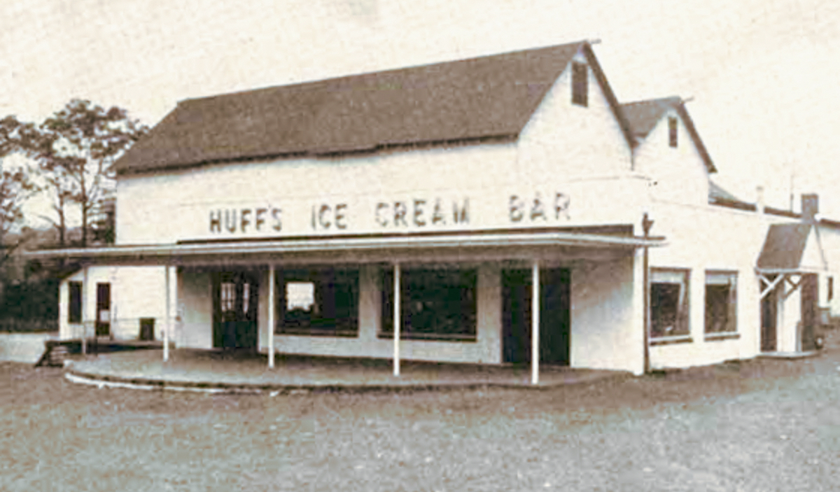 In the mid-20th century, Huff’s Ice Cream Bar offered an old-fashioned community atmosphere and some memorable selections on its ice cream menu—like the “Heavy,” an extra, extra thick milkshake, or the gigantic sundae called a “Pig’s Dinner.” Huff’s also sold savory food such as burgers, fries, and sandwiches.
