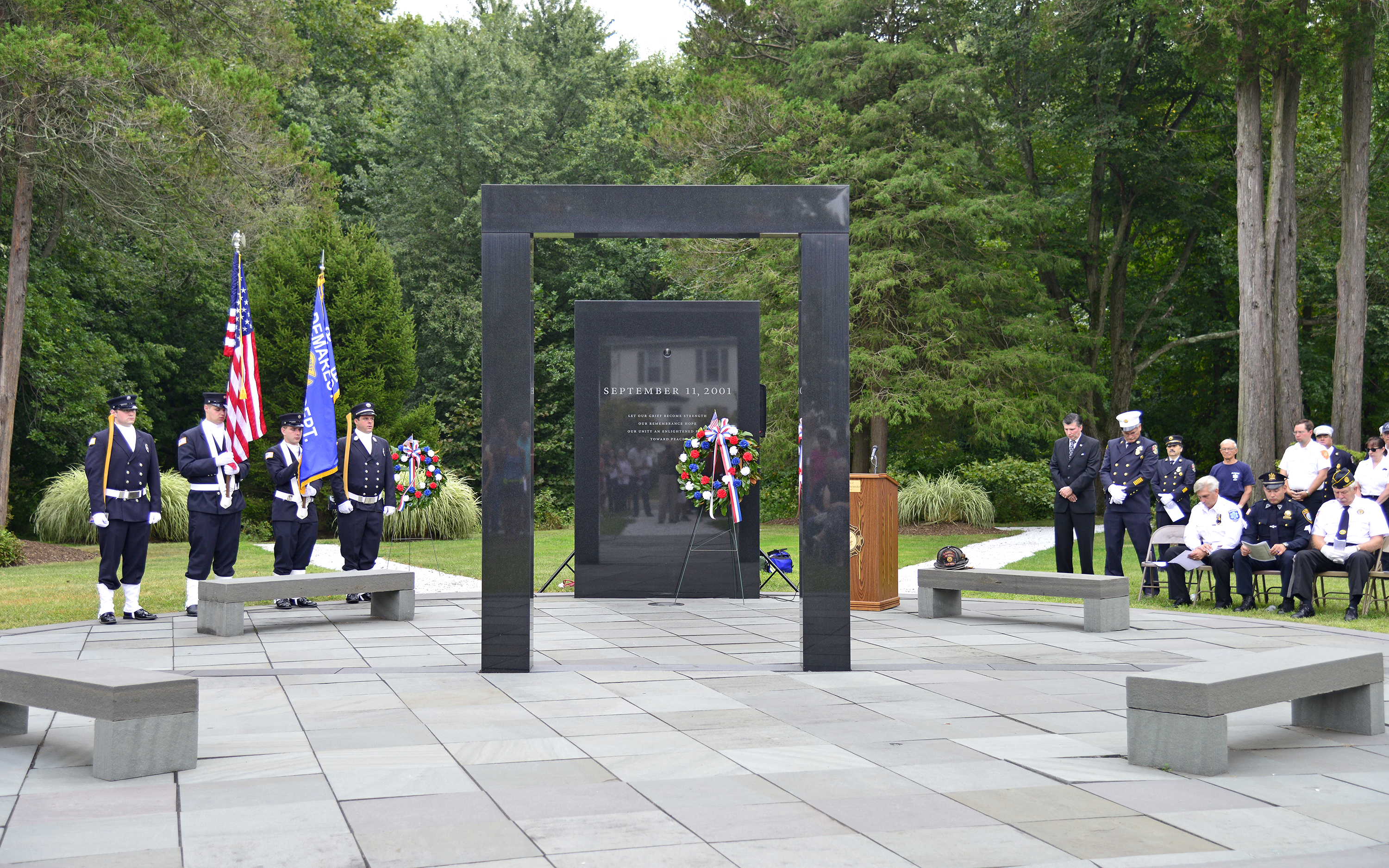 Completed in 2004, Closter’s September 11th Memorial in Remembrance Park pays tribute to all of the Americans whose lives were so profoundly affected and homage to all persons whose sacrifices have provided our cherished freedom and liberty.