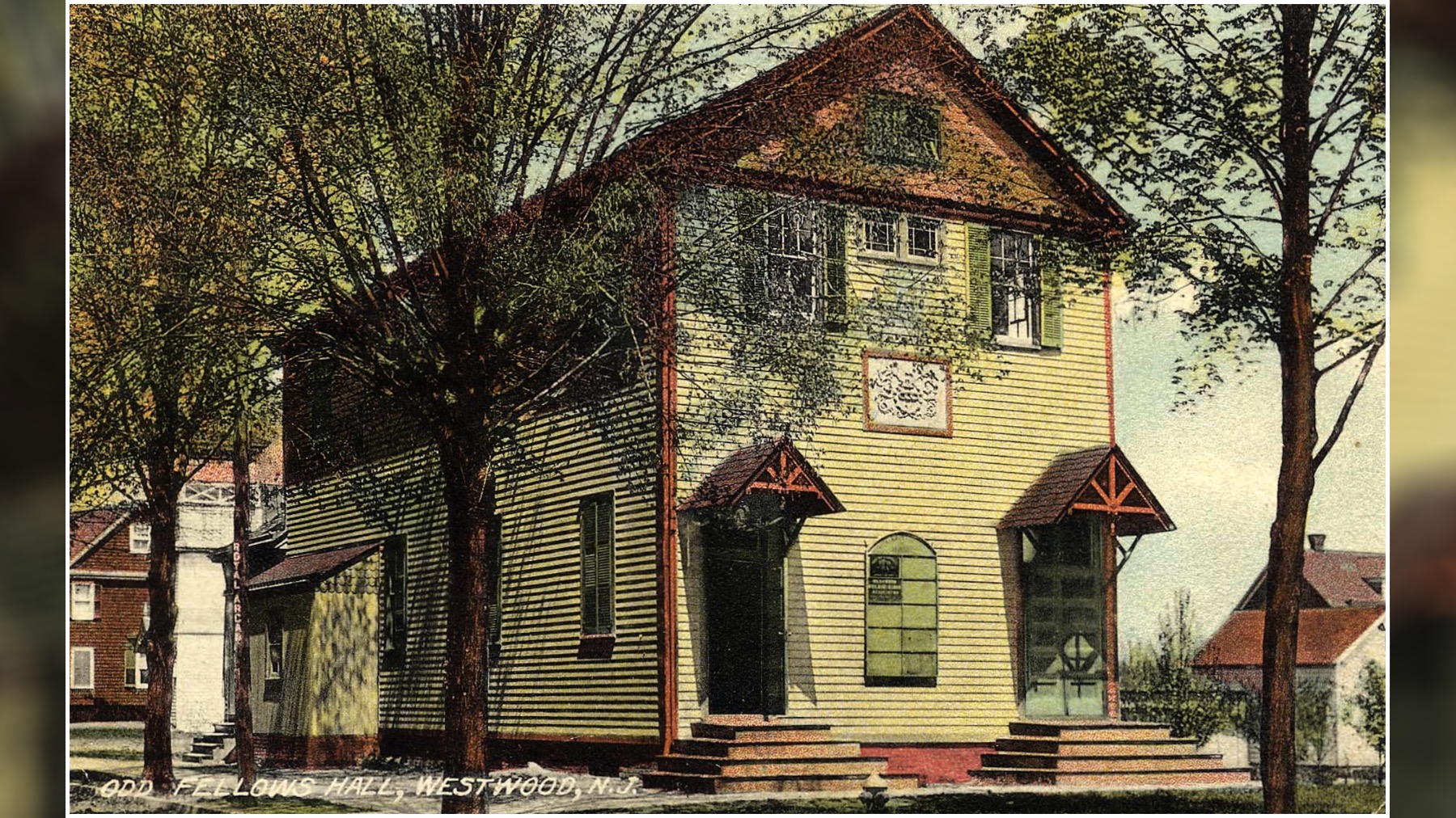Home of a fraternal organization called the Independent Order of Odd Fellows, the hall stood at Jefferson and Center avenues, now the Westwood firehouse parking lot. It was a center of Westwood’s social activity in the early 20th century.