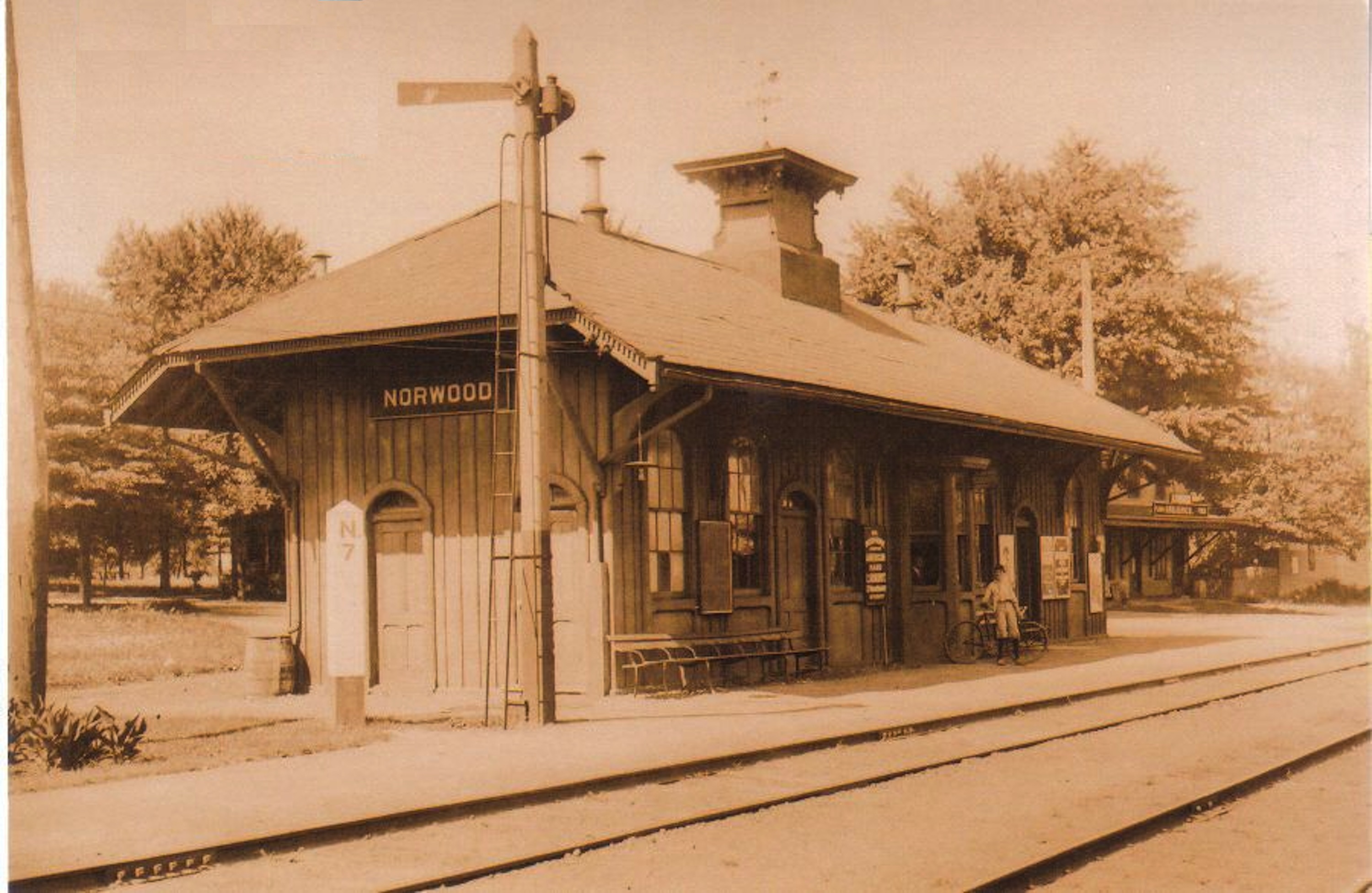 The Norwood Post Office operated out of the Norwood station on Erie’s Northern Railroad line. That station, shown at right, was built in 1870 at Broadway and Railroad Avenue.