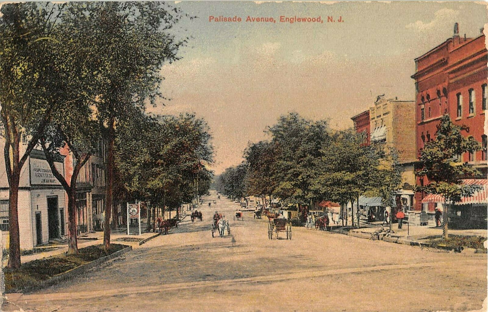 ENGLEWOOD, N.J.—It’s difficult to imagine that Palisade Avenue in Englewood ever looked the way it does pictured above. Showing a dirt road and traffic only from horses and carriages, this view into the downtown dates to around 1904.