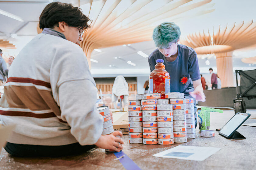 The design, constructed from 3,366 cans of food and 90 jars of peanut butter, reimagined the story’s “pea” as a symbol of how even a single contribution can make a difference. Students sourced cans by color—including pink salmon cans to form the princess’s dress—to achieve a precise visual effect.