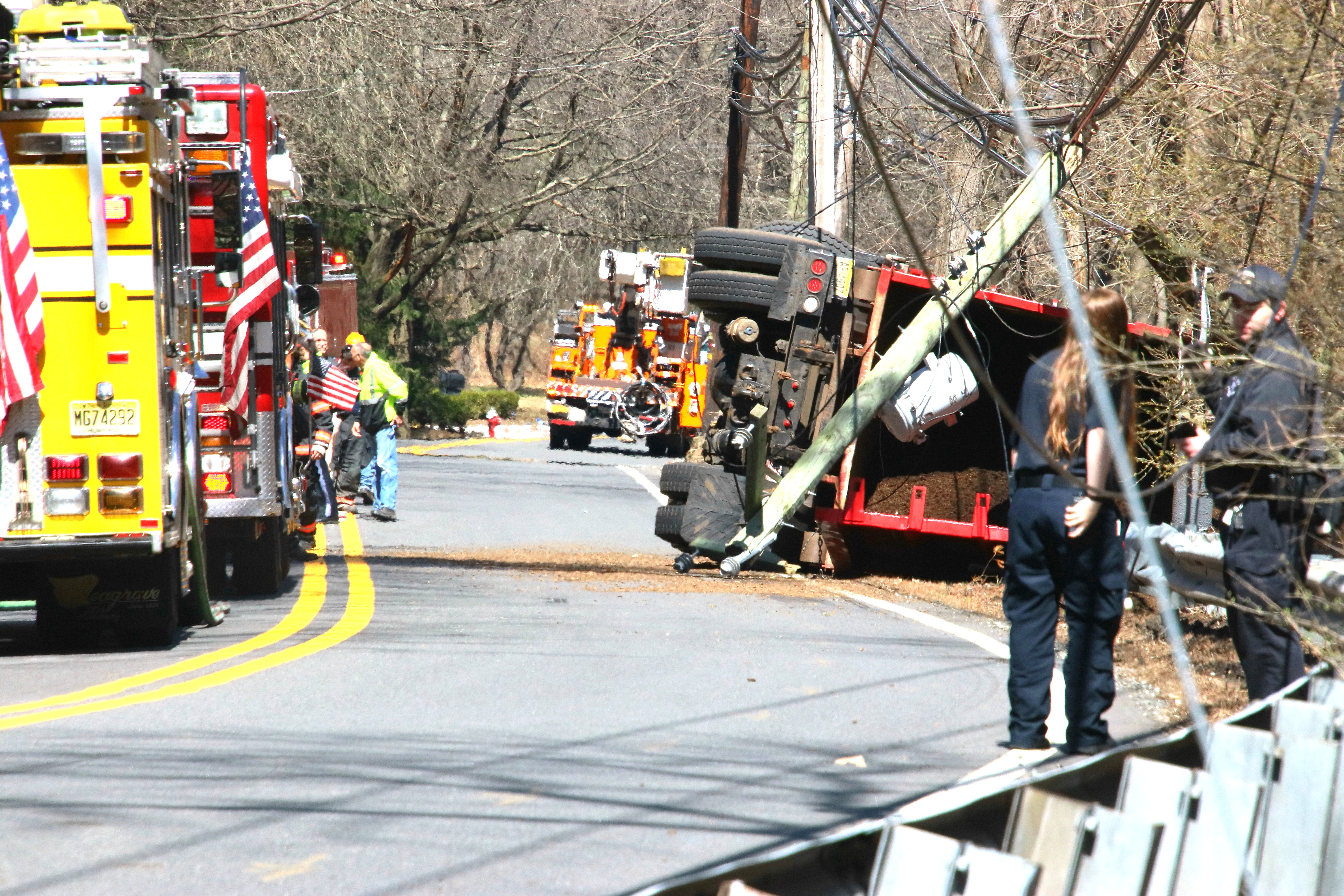 ROCKLEIGH, N.J.—A large vehicle overturned on Piermont Road, taking down some utility poles in the process, on Monday, April 1 at about 12:30 p.m.