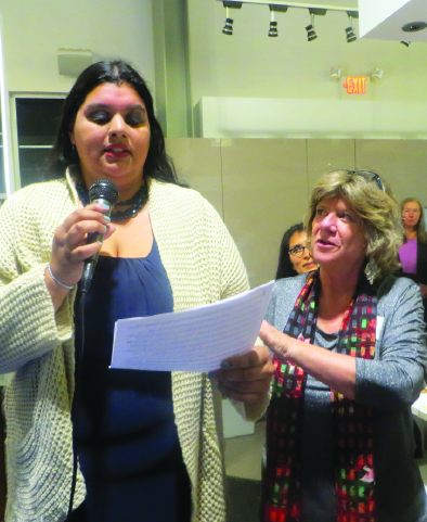 A highlight of the evening was a dramatic and moving tribute to the WRIC, delivered by client advocate Aurora Ali. As she unraveled her story of a life broken by despair and rejection, teetering on the brink of suicide, audience members were stunned and a few had tears in their eyes. Ali herself was in tears as she recounted her ordeal. As she stepped up to the microphone, she appeared visibly shaken. But Corcoran stood nearby and radiated a warmth that helped Ali gain her composure.