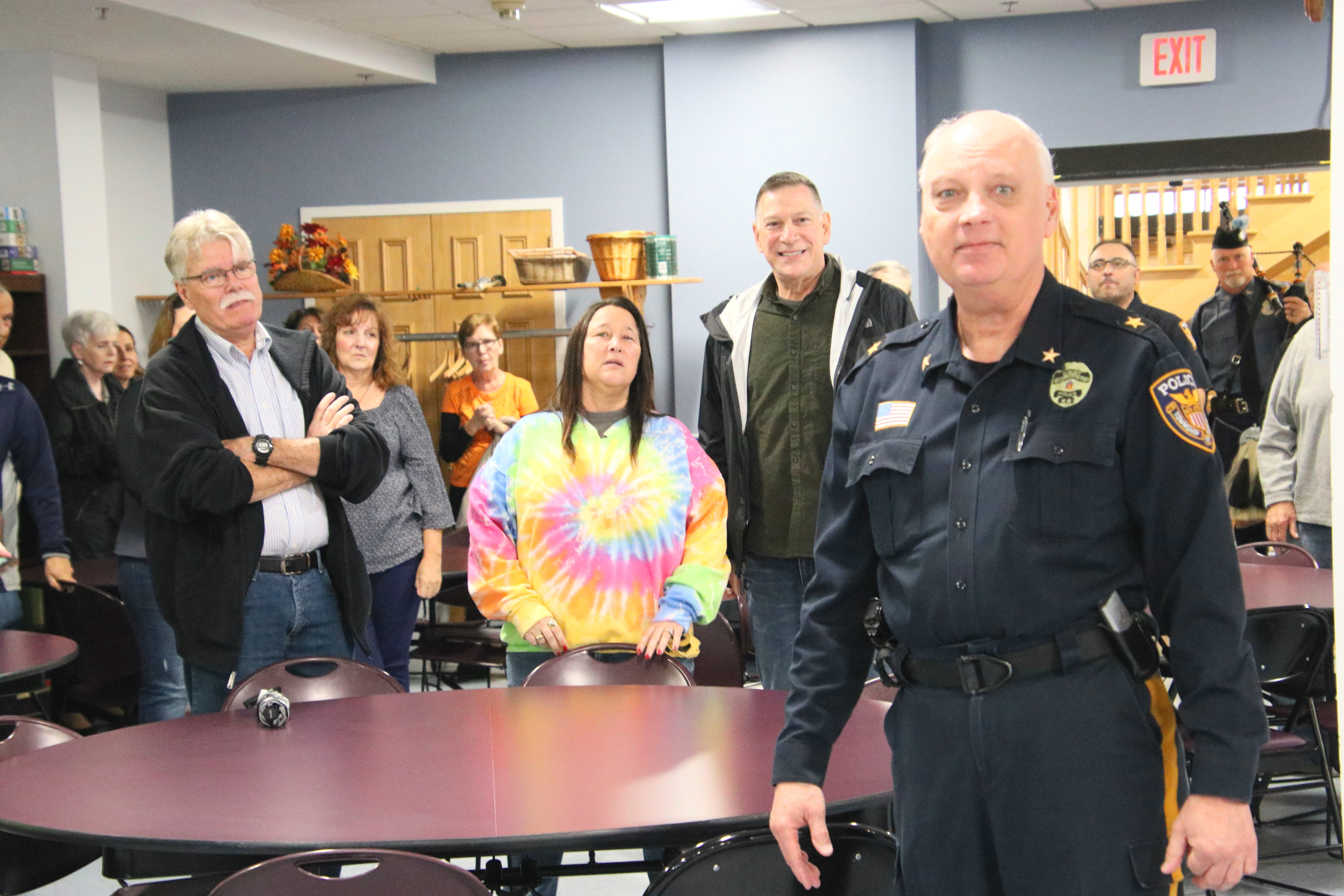 Attending his final walk-out at Town Hall was a crush of well-wishers: family; active and retired police officers; Paramus Police Chief Kenneth Ehrenberg, with whom Hooper rose through the ranks; members of the Volunteer Fire Department, Volunteer Ambulance Corps, town Community Emergency Response Team, and Department of Municipal Facilities; other town workers; Mayor Peter Calamari; and Councilman Arthur Cumming.