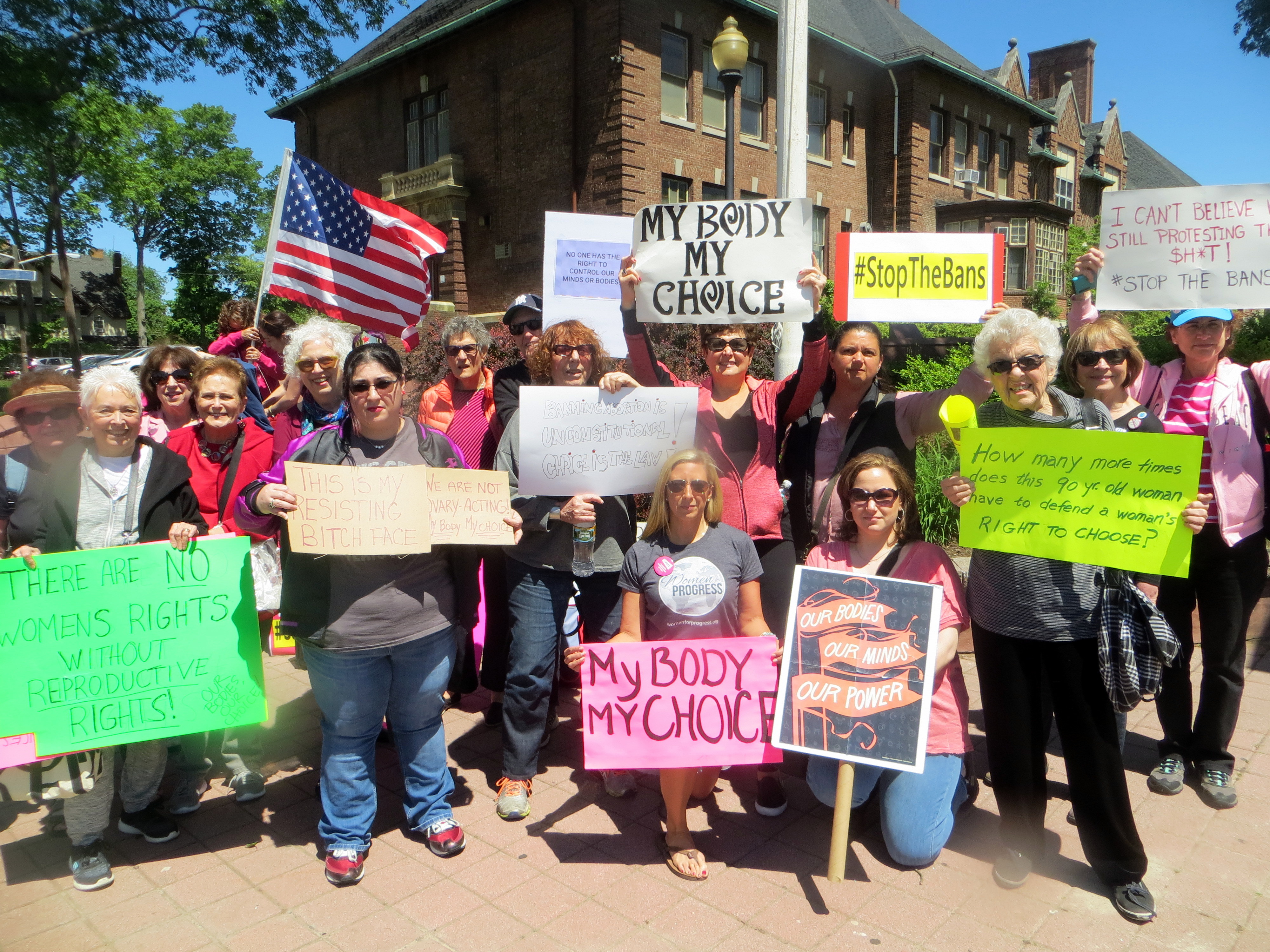 By noon in Englewood more than 150 protesters—men and women—had gathered at Soldier’s Monument on Palisade Avenue to oppose Alabama’s ban.