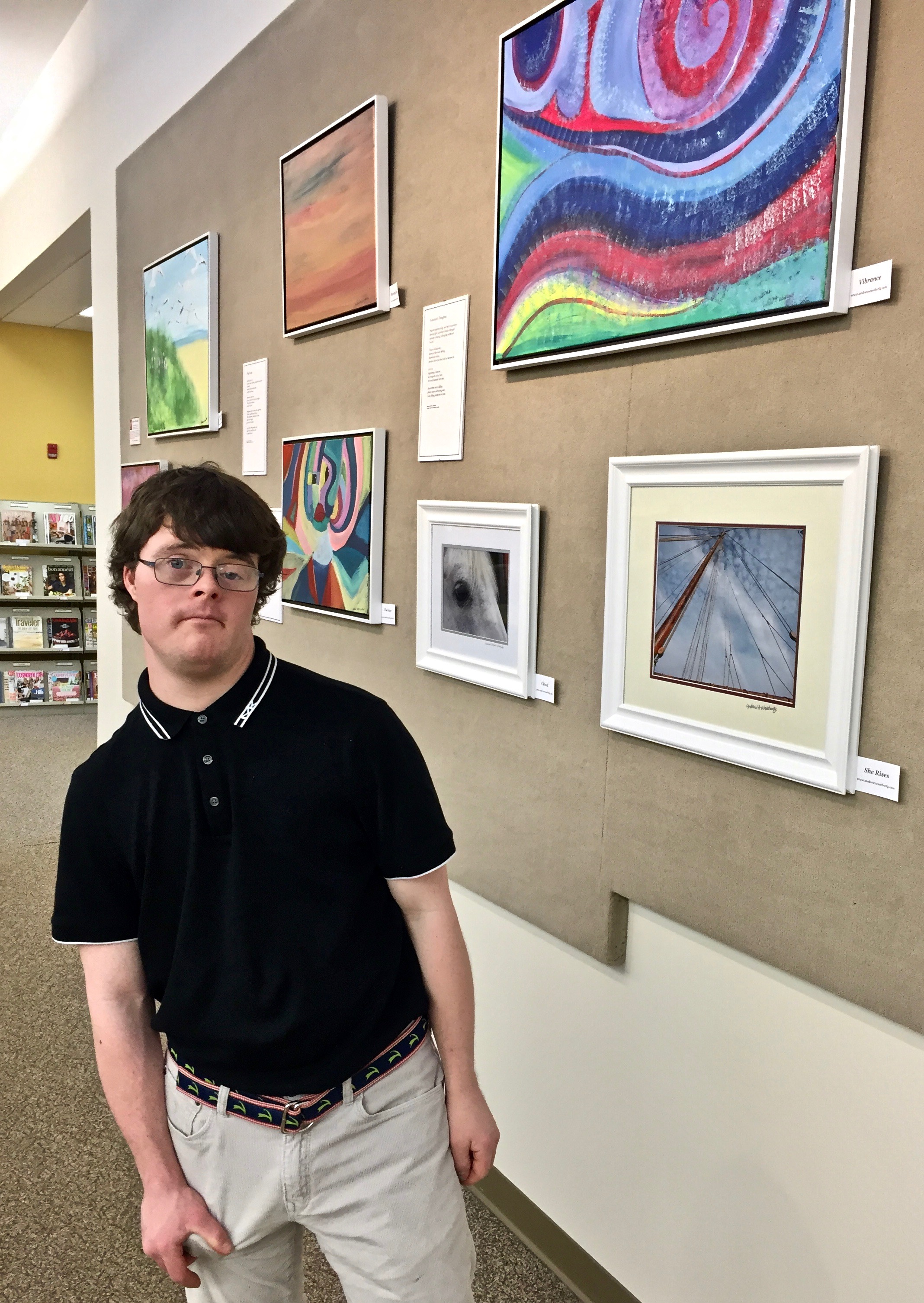 “The Art Beyond A Syndrome” exhibition includes paintings, photographs and poetry that blend together to illustrate his joyful spirit. He captures the world through his camera lens, his paintbrush and his pen on paper, while using art as a tool for personal and social growth.