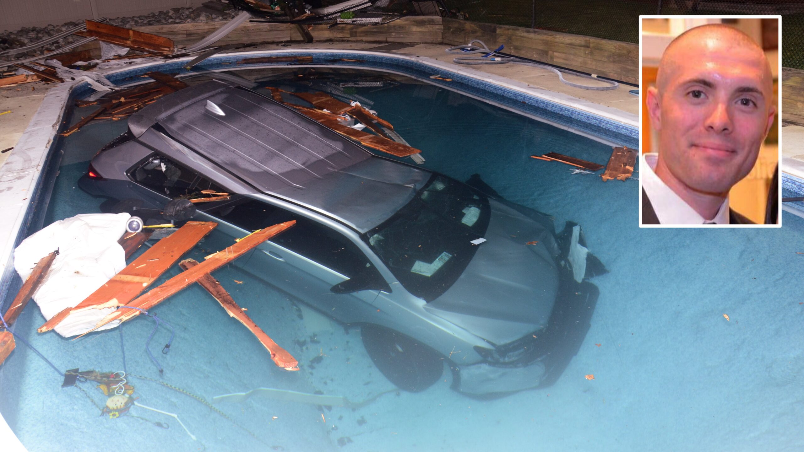 Sestanovich hopped into the pool. With a window punch, he broke a back window and got the driver to safety.