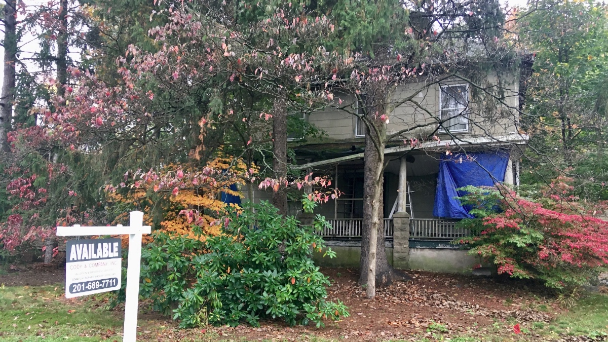 Since fall 2021, the property’s Pascack Road frontage has sported an available sign. A dilapidated home, often strewn with tarps and deteriorating structures including a small barn and garage, can be seen from Pascack Road.