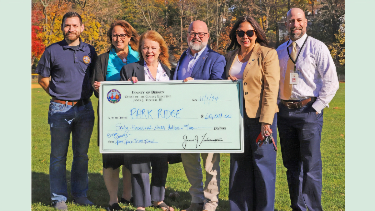 PARK RIDGE—Bergen County Executive Jim Tedesco and members of the Board of Commissioners recently presented a ceremonial check for $60,011 from the Bergen County Open Space Trust Fund (OSTF) to Mayor Keith Misciagna and members of the Borough Council.