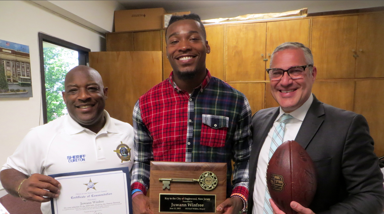 In recognition of Winfree’s status as a role model and his acceptance in the Denver Broncos, Cureton then presented him with a Certificate of Commendation from the Bergen County Sheriff’s Office.