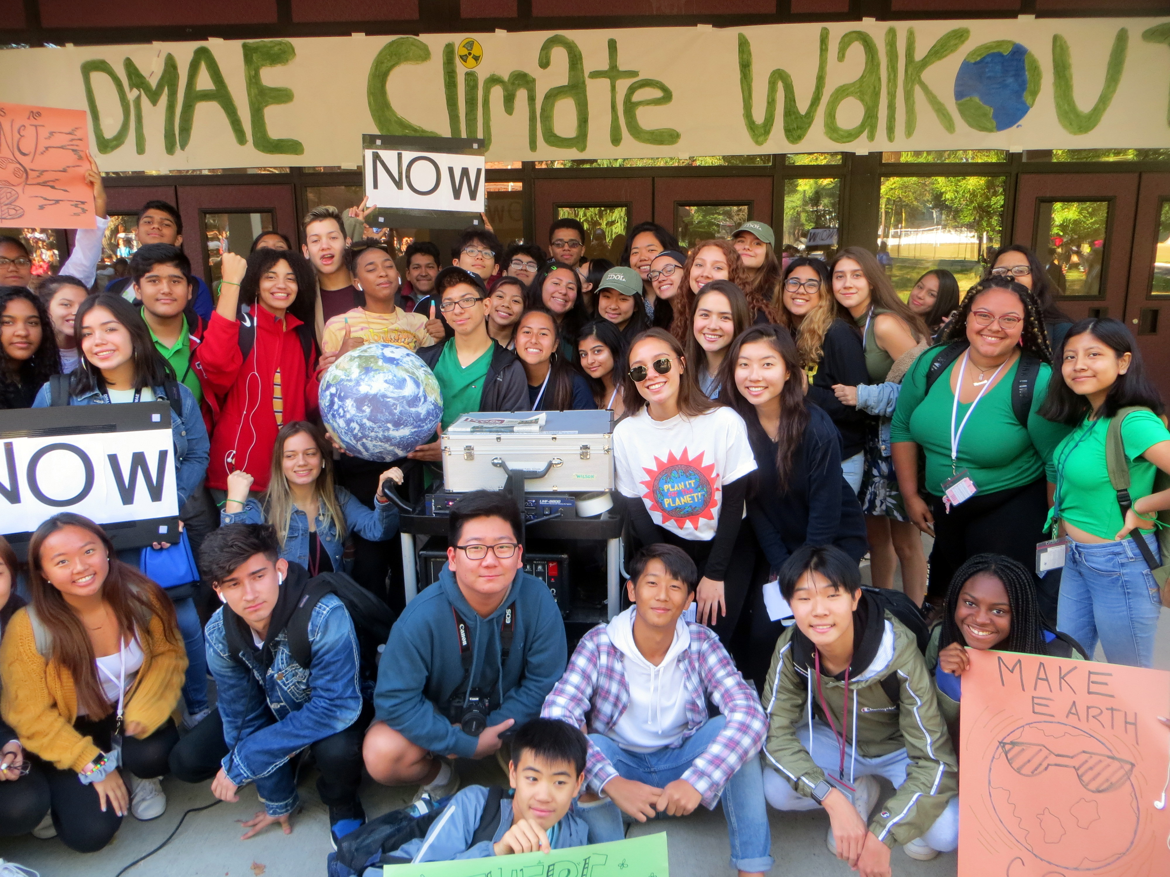 Students on the DMHS campus wore green bracelets and carried handmade signs that read “There is no Planet B,” “The Earth is Changing, Why Aren’t We?” and “Make the Earth Cool Again.”