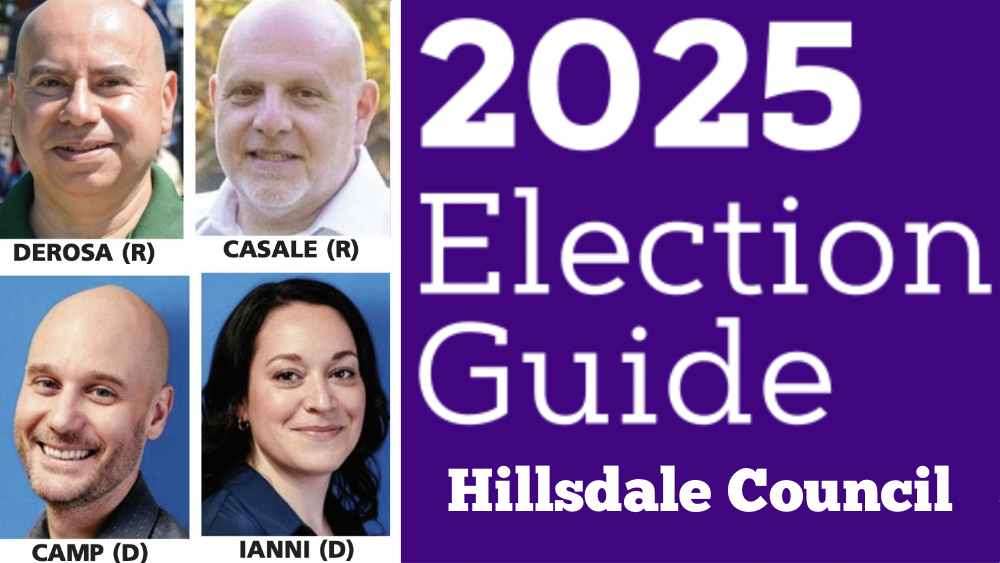 Hillsdale’s Council election pits Republicans Anthony DeRosa (a former councilman) and Louis Casale against Democrats Christopher Camp and Gabriella Ianni for two open seats. (Incumbents Justin Fox and Janetta Trochimiuk, both Republicans, did not seek new terms.)