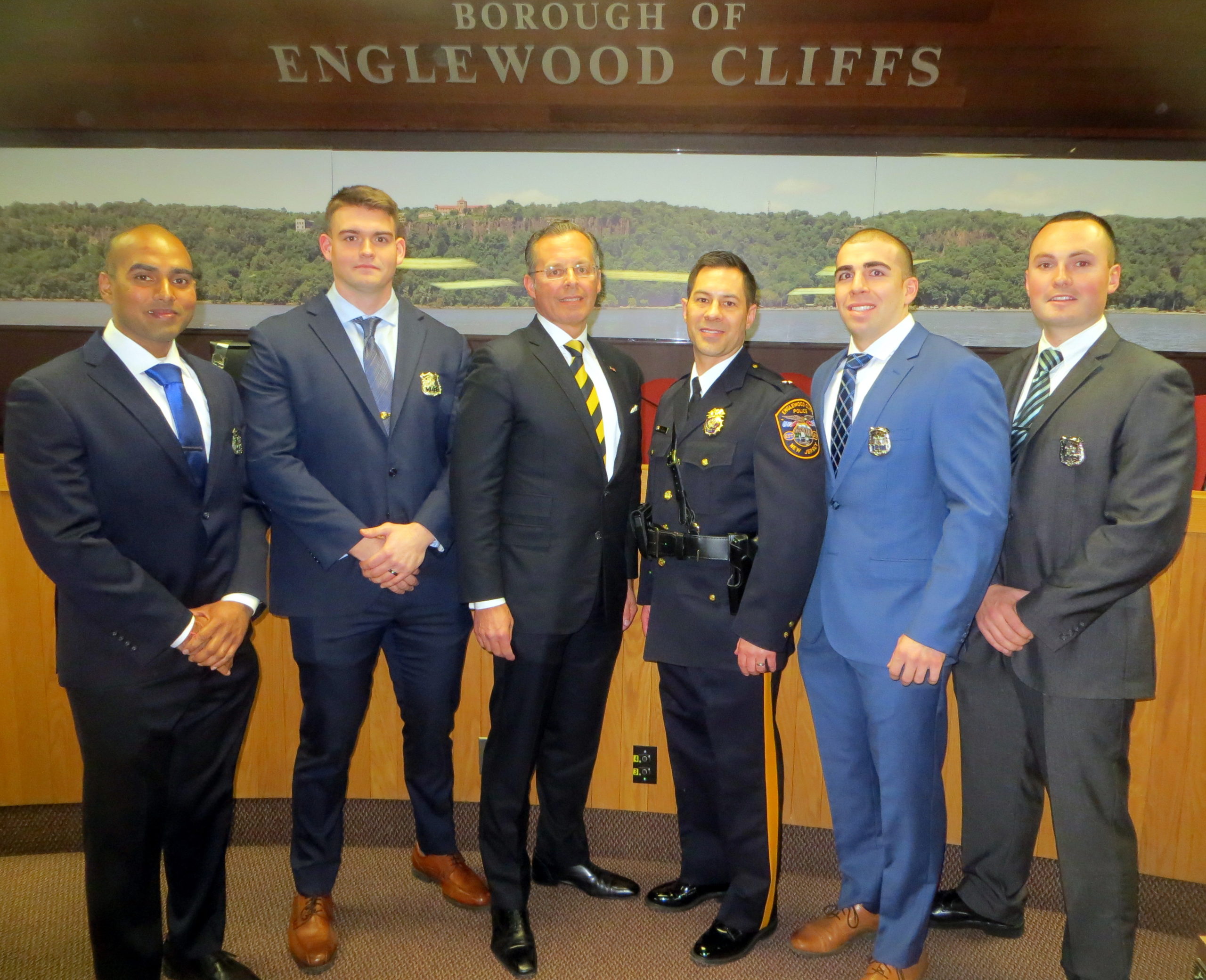 ENGLEWOOD CLIFFS, N.J.—On Dec. 23, 2019, four new police officers were sworn into the Englewood Cliffs Police Department: Patrolman Brendan Zevits, Patrolman Nicholas Regan, Patrolman Joseph Farrelly and Patrolman Pete Rampersad.