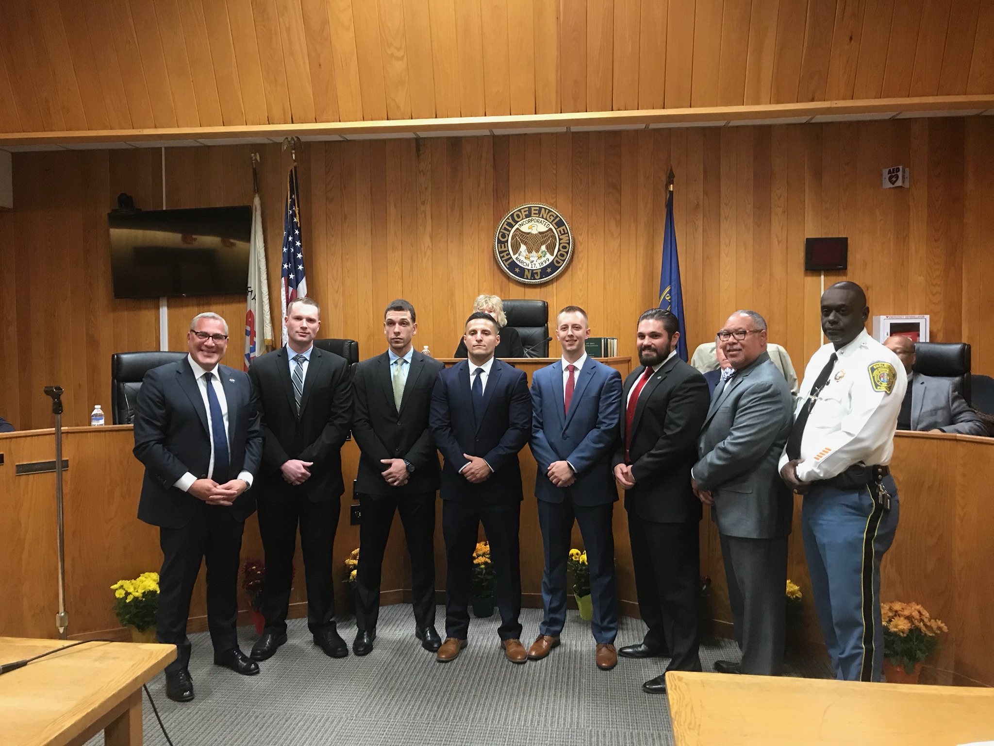 ENGLEWOOD, N.J.—Four new police officers were officially sworn-in to the city’s police department Nov. 12 by the mayor and police chief to applause and all-around congratulations from friends, family and fellow officers.