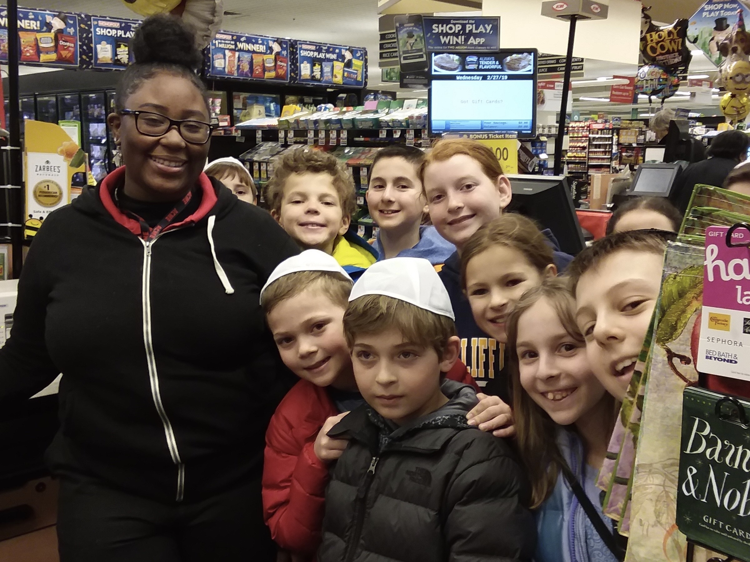 WOODCLIFF LAKE, N.J.—Fourth-grade religious school students of Temple Emanuel of the Pascack Valley took to the road in advance of Purim and Passover to visit Acme Markets and learn firsthand how to select products that are kosher for the home.