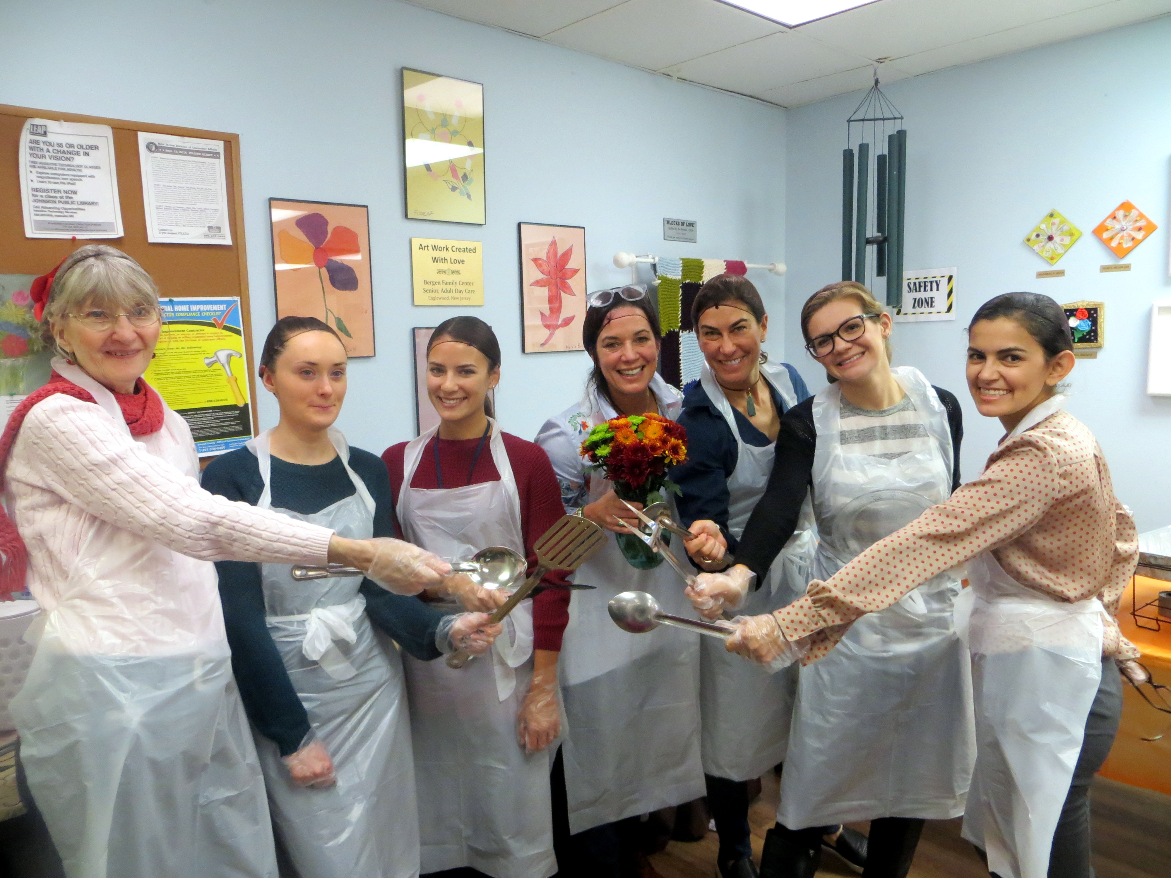 For the center’s annual “Liz and Friends” event, Liz Corsini, vice president of the Bergen Family Center, invited nine of her friends to cook up a delicious holiday feast for the seniors in the Adult Day Care Program, which is directed by Holly Scipio.
