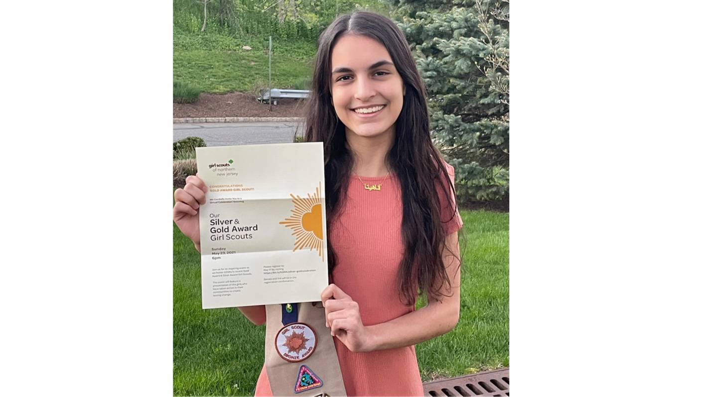 The award, bestowed April 30 by Girl Scouts of Northern New Jersey, requires a minimum of 80 hours dedicated to a project benefiting the community. Only 5% of Girl Scouts attain it.