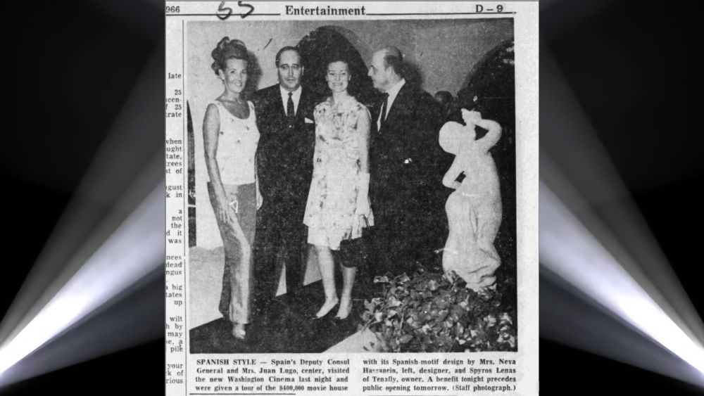 When the Washington Cinema opened on Sept. 2, 1966, it was hailed as a state-of-the-art theater for Bergen County. Located in the Pascack Shopping Center, the venue was the brainchild of owner Spyros Lenas, who worked with interior designer Niva Hassanein to create a lavish Spanish-inspired atmosphere. Patrons entered through a Spanish garden and passed copper doors into a 600-seat auditorium featuring slate floors, fine tapestries, and stereophonic sound. With 40 inches of legroom and one of the largest screens in the area, it promised a premiere moviegoing experience just a short walk from acres of parking.