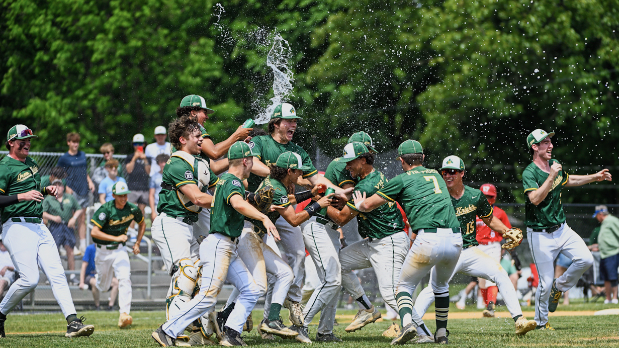 The top of the sixth was the turning point of the game. St. Joe’s junior Myles Gomez led off with a single. Then, sophomore, Brady Shust smashed a two-run HR to left-center field which sparked a wild celebration at home plate. The Green Knights now led, 4-3.