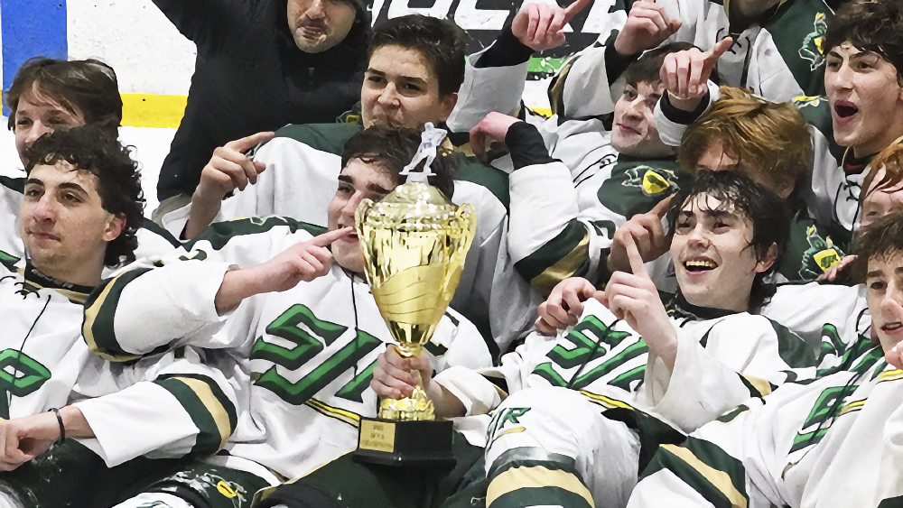 Wednesday, Jan. 22, Ice Vault Arena, Wayne—This game was a decade in the making. The (#3 seed) St. Joseph Regional High School Green Knights upset the (#1 seed) Don Bosco Prep Ironmen, 2-0, in the Bergen County Hockey Tournament Final. St. Joe’s dominated the first two periods, outshooting Bosco 27-10, but neither team could find the back of the net.