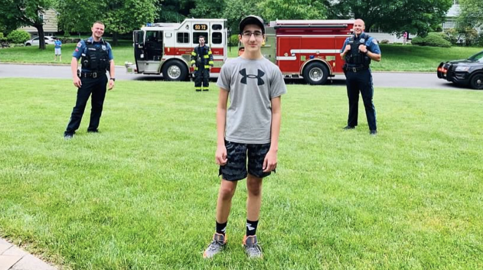 Also for his 13th birthday, the Woodcliff Lake fire and police departments conducted a driveby at his house, with members posing for pictures with him, and he loved it.