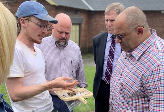He tagged his Facebook post “Attention all wanna be archeologists!” and his posting exclaimed: “And he already has found evidence of a possible 19th Century factory!!!”