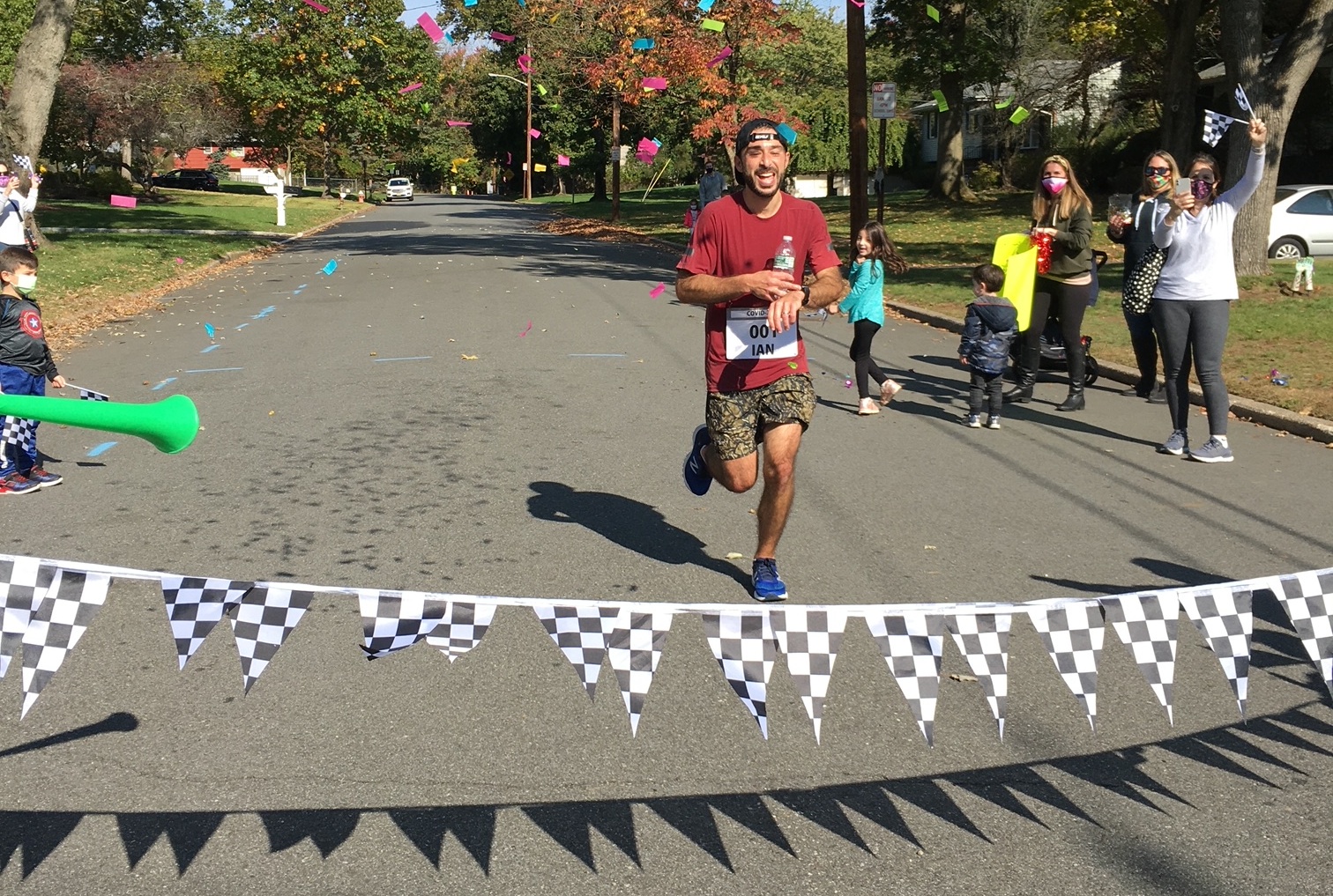 Waiting for him at home on Cottage Place: His family, of course, and many friends and supporters. He crossed the finish line, and there were confetti cannons and a medal.