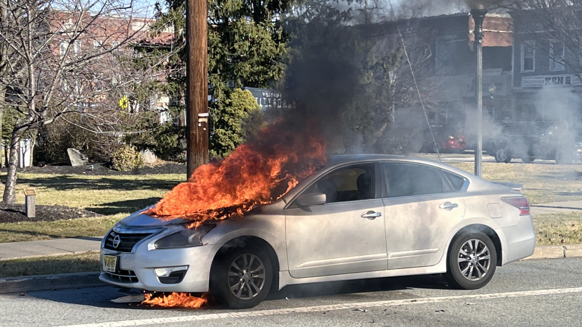 HILLSDALE—The owner of a silver Nissan Altima smelled something burning from his car, pulled over, and saw flames from his engine. He called emergency services and was standing by, the crisp blue morning of Monday, Jan. 16, as firefighters from the borough extinguished his burning car.