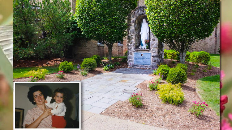 Inspired by the Blessed Mother statue at Our Lady of Lourdes and her Nonna’s devotion to the rosary, Joan’s mother, Rosemarie D’Alessandro, envisioned the grotto as a serene space for reflection and peace. With the support of Father Finnegan, the pastor in 1973, who was open to placing the grotto in the area between the church and the rectory, Rosemarie chose a location nearer to the church to create an intimate atmosphere reminiscent of Lourdes.