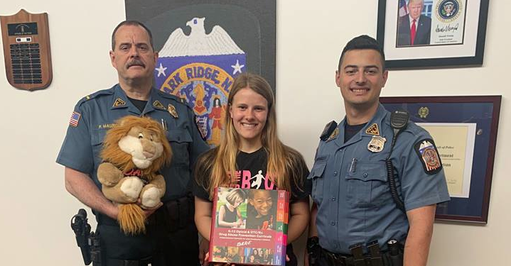Moreover, it says, she worked closely with Park Ridge High School teachers and the Park Ridge Police Department “to obtain a commitment and willingness to implement D.A.R.E. program objectives into the high school curriculum … while executing several community and school events to kick off this initiative.