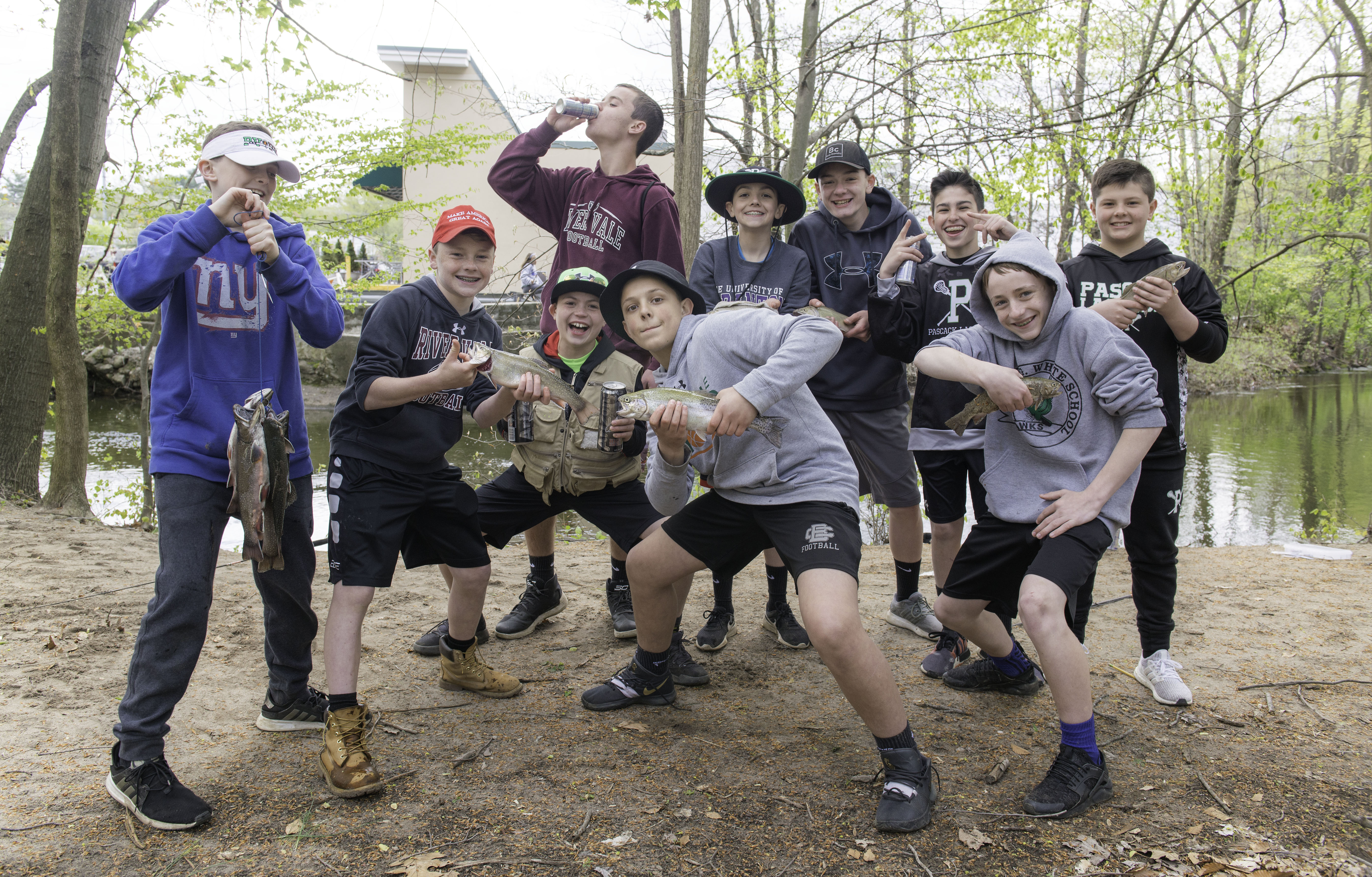 The event, sponsored by the Friends of the Pascack Brook, sparkled. Children 4–16 fished the brook between St. John R.C. Church in Hillsdale and Brookside Place in Westwood, coming up with their share of wriggly glory.