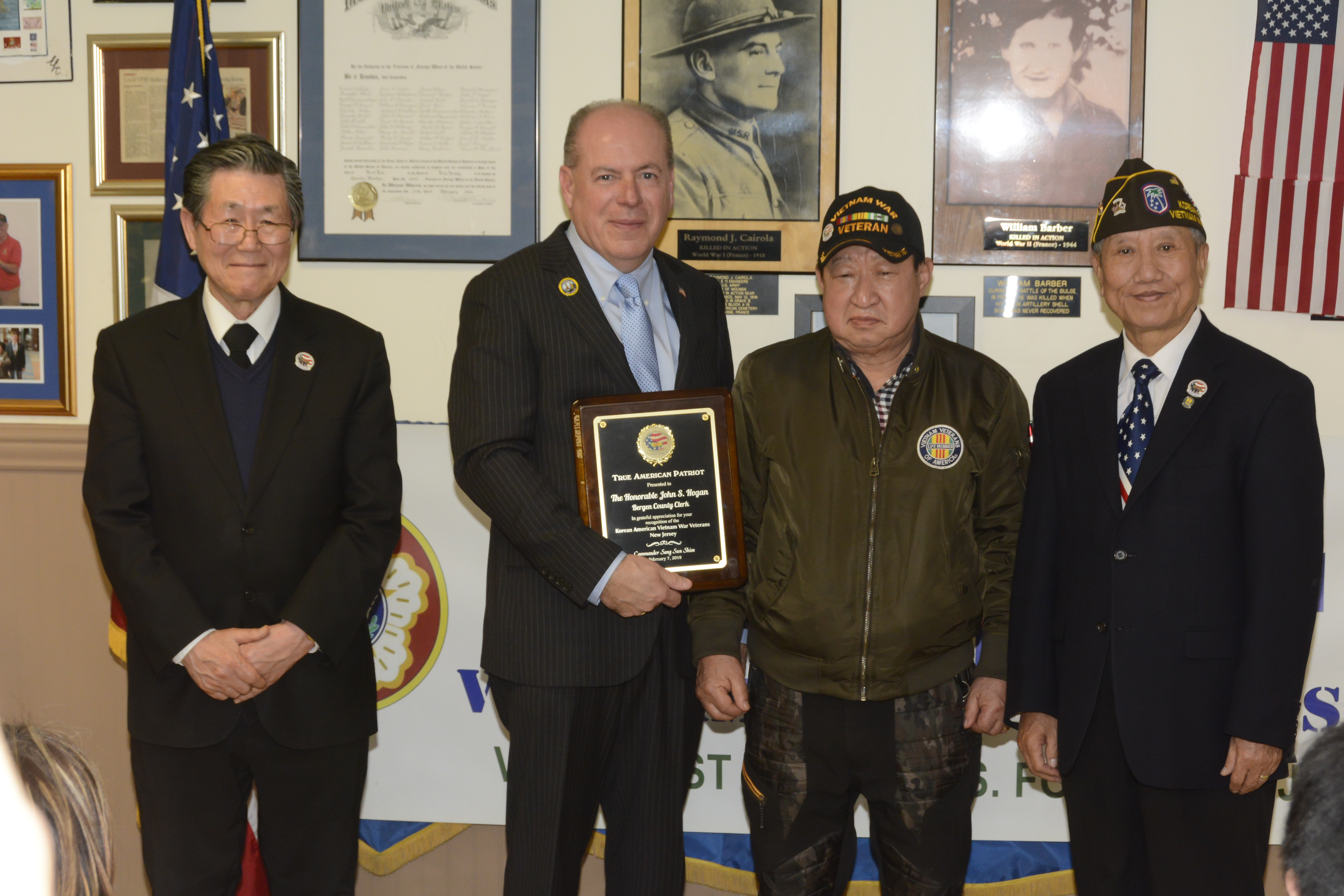 Bergen County Clerk John S. Hogan is the recipient of the first Korean-American Vietnam War Veterans Association “True American Patriot” award, which recognizes Hogan’s work “acknowledging the dedicated service and sacrifice of Korean-American veterans who participated in the Vietnam War.”