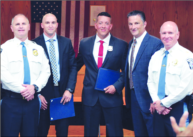 NORTHVALE—Mayor Ed Piehler had the honor July 17 of swearing in two new officers to join the ranks of the Northvale Police Department. Officers David Kropilak and Edward Sedano took the oath of office in the presence of family, friends, and colleagues.