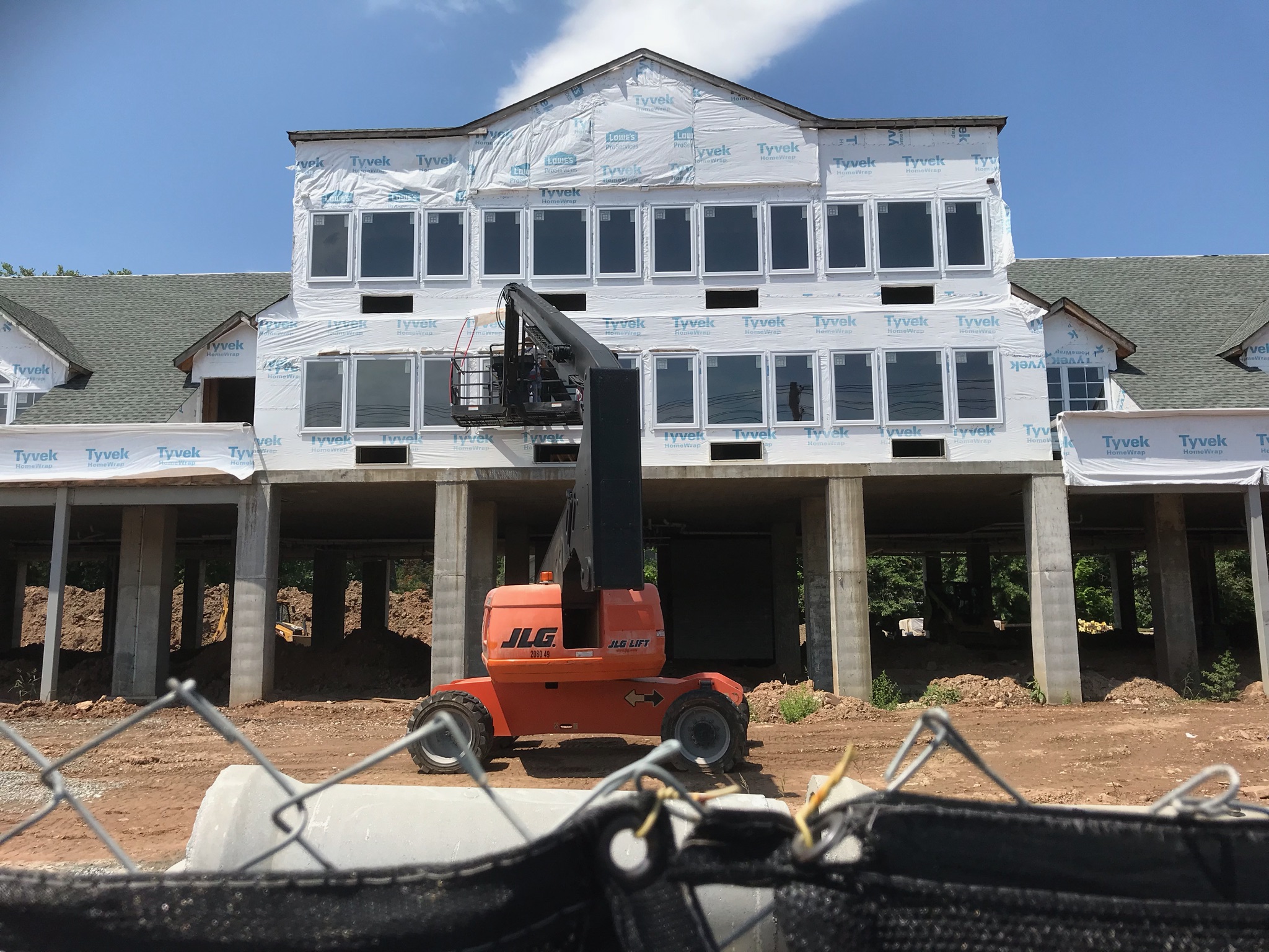 When Northern Valley Press observed the site Aug. 1, an excavator and crane were operating. The excavator appeared to be involved in placing large drainage pipes between the two buildings at 521 and 525 Livingston St.