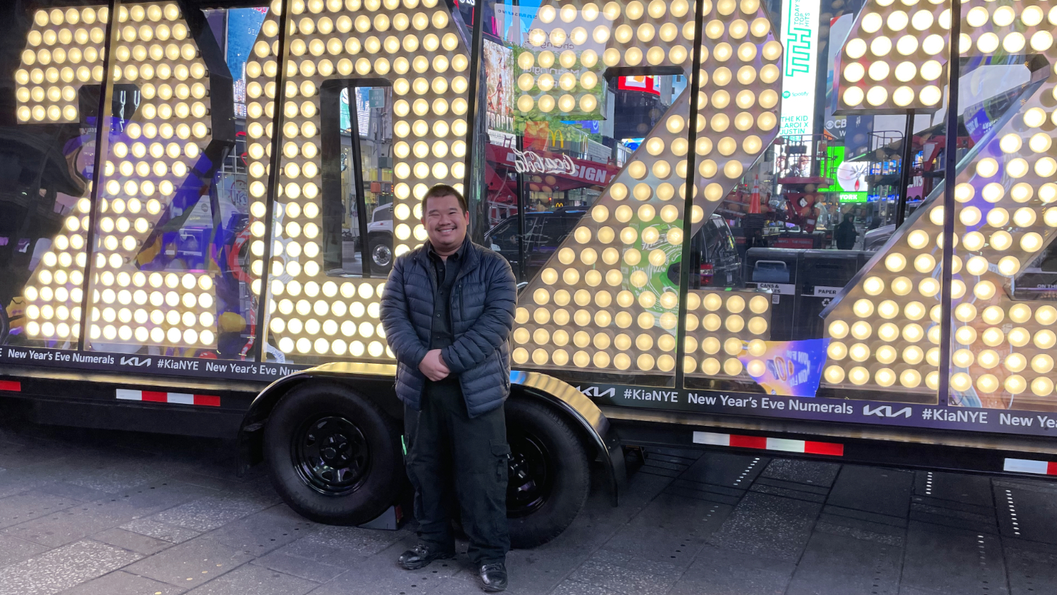 And he was on top of the world at Times Square for the installation of the huge illuminated “2022” seen worldwide heading into the New Year. He supported the Times Square Alliance and automaker Kia’s C-suite.