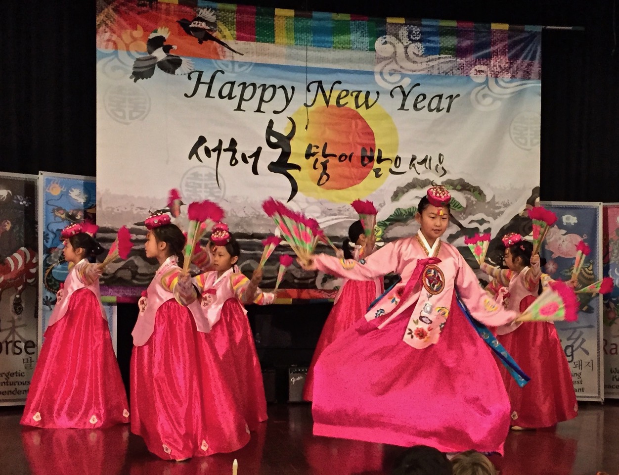 The children’s fan dance was performed by elementary school students wearing traditional dresses in pinks and reds symbolizing prosperity and health for the coming year. A dramatic drum dance followed, performed by Tenakill’s seventh and eighth graders whose drumming skills were impressive. Choreography for both the fan dance and the drumming performance was provided by Ms. Kang.