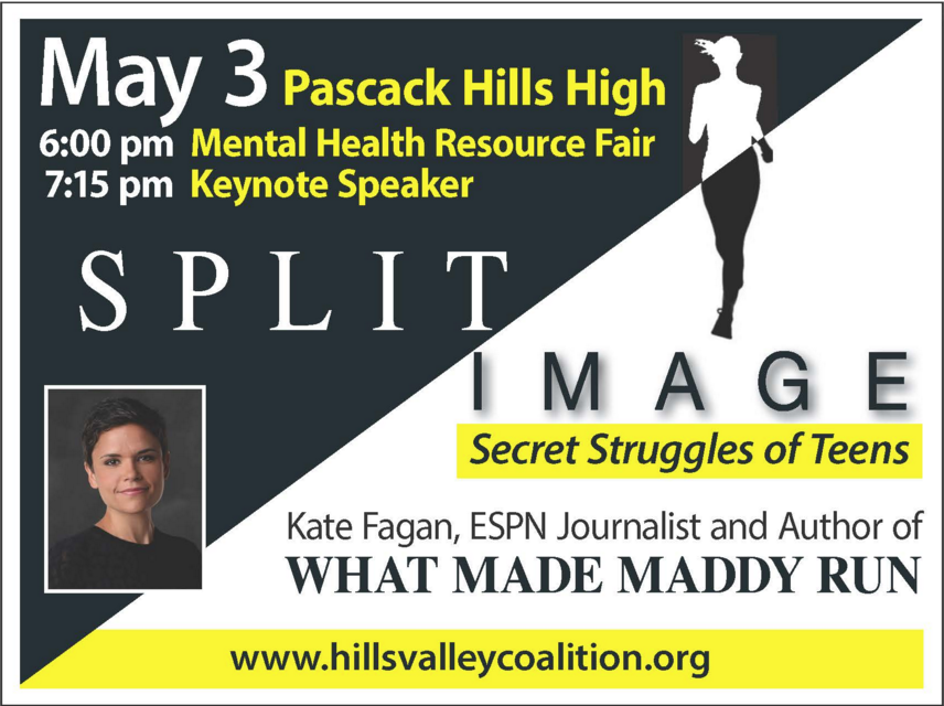 Fagan was keynote speaker at Hills Valley Community Coalition’s parent/teen education program “Split Image: Secret Struggles of Teens” at Pascack Hills High School on May 3.