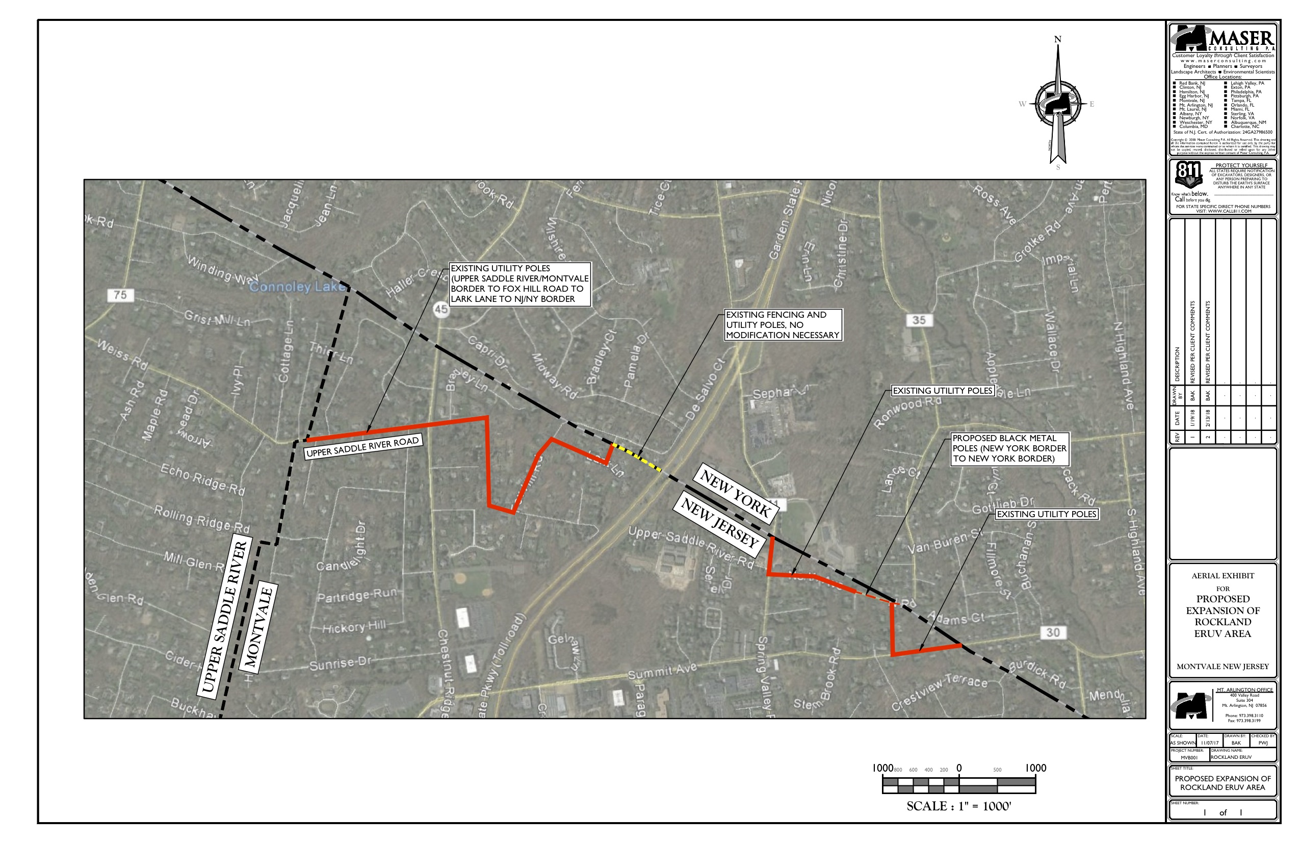 The agreement allows the eruv association to expand its 26 mile-long Rockland County eruv – marked by white PVC pipes on utility poles – through Montvale via Upper Saddle River Road, Fox Hill Road, Lark Lane and Wren Way before crossing the border into New York. Another portion includes parts of Spring Valley Road to North Avenue, to Summit Avenue to the New York border.