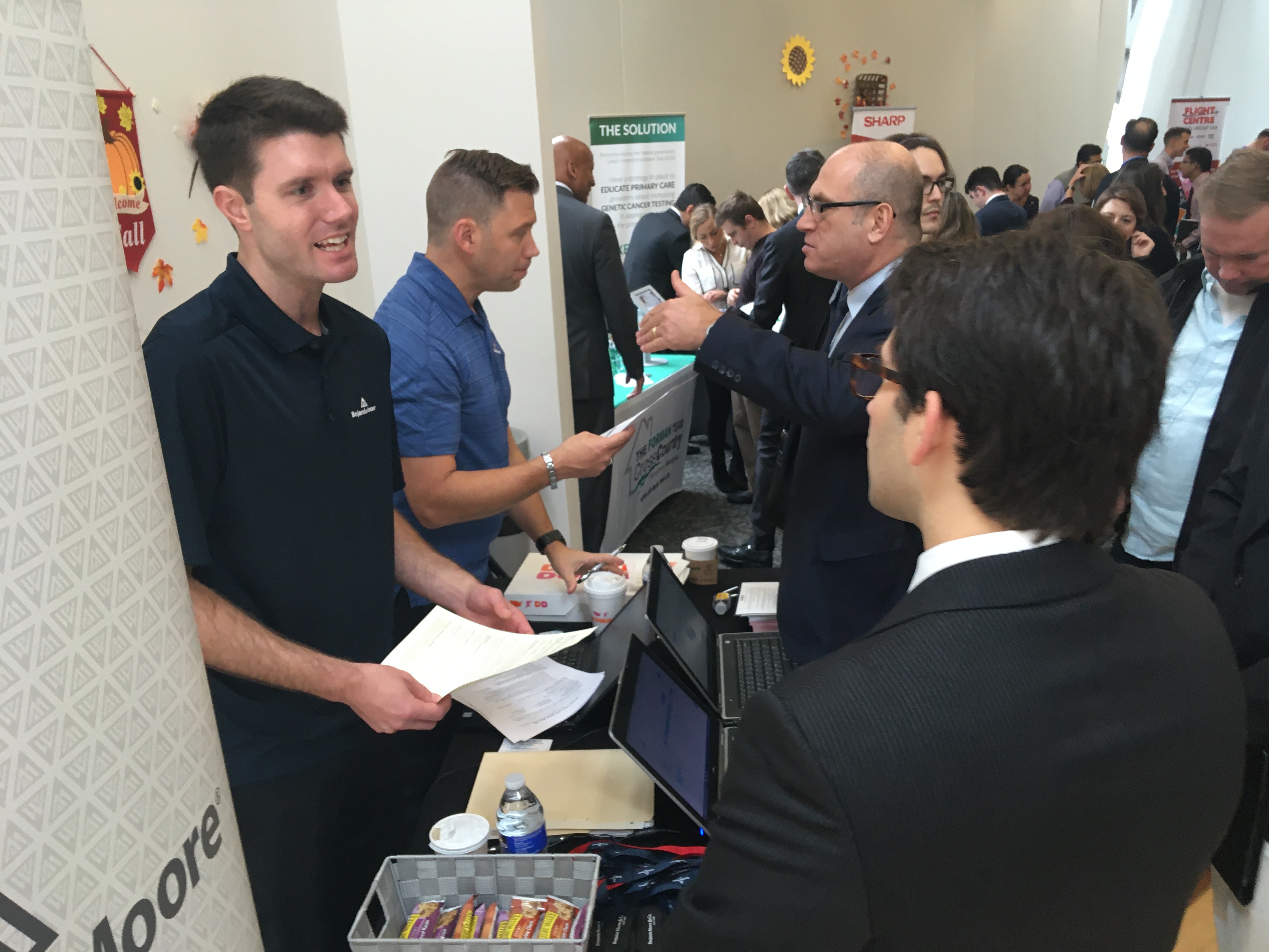 He said he had just met with Flight Centre Travel Group, based on Paragon Drive and fielding a line at their table across the room. “Hopefully that goes well,” he said.