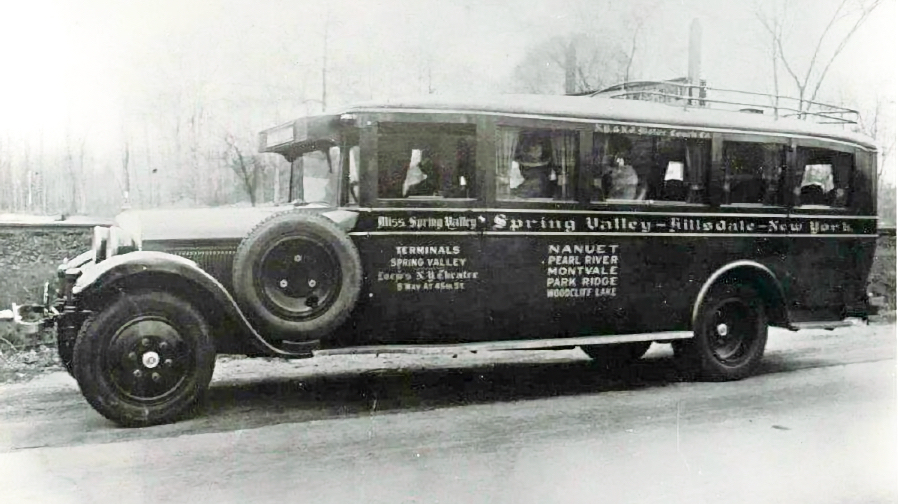 A century ago, Pascack Valley residents gained a new option for getting into New York City. In April 1926, New York & New Jersey Motor Coach Co. opened an express bus line running between Spring Valley and Times Square, with local stops in Montvale, Park Ridge, Woodcliff Lake, Westwood and Hillsdale. The photo above was taken in Westwood.