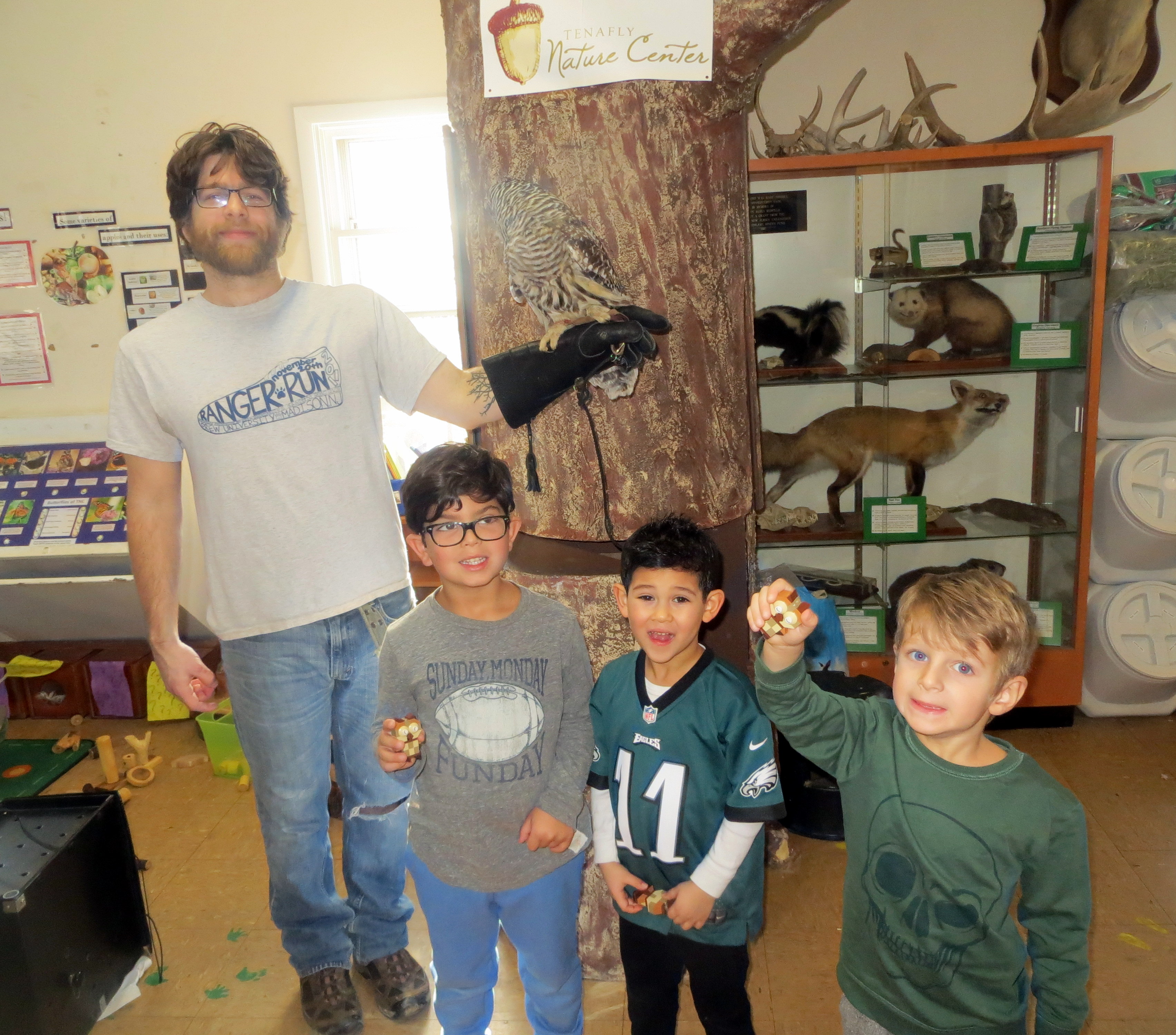 TENAFLY, NEW JERSEY —— A group of two dozen youngsters and parents at the Tenafly Nature Center recently got up close and personal with owls and had a real hoot.