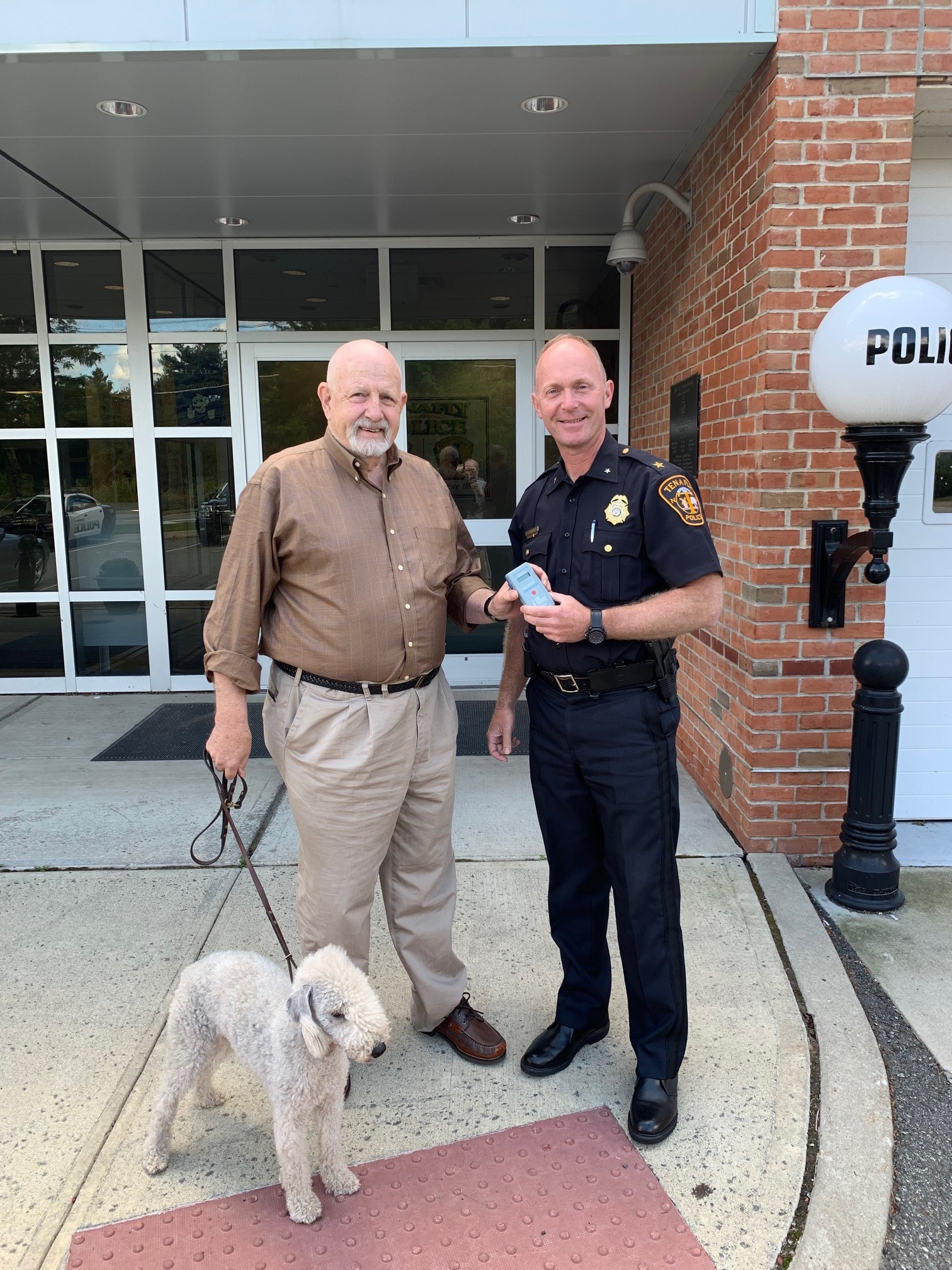 TENAFLY, N.J.—While the borough currently builds its first-ever $50,000 dog park at the formerly shuttered Tenafly Swim Club site, local four-legged companions need not worry about losing their way thanks to a special donation received by Tenafly’s Police Department.