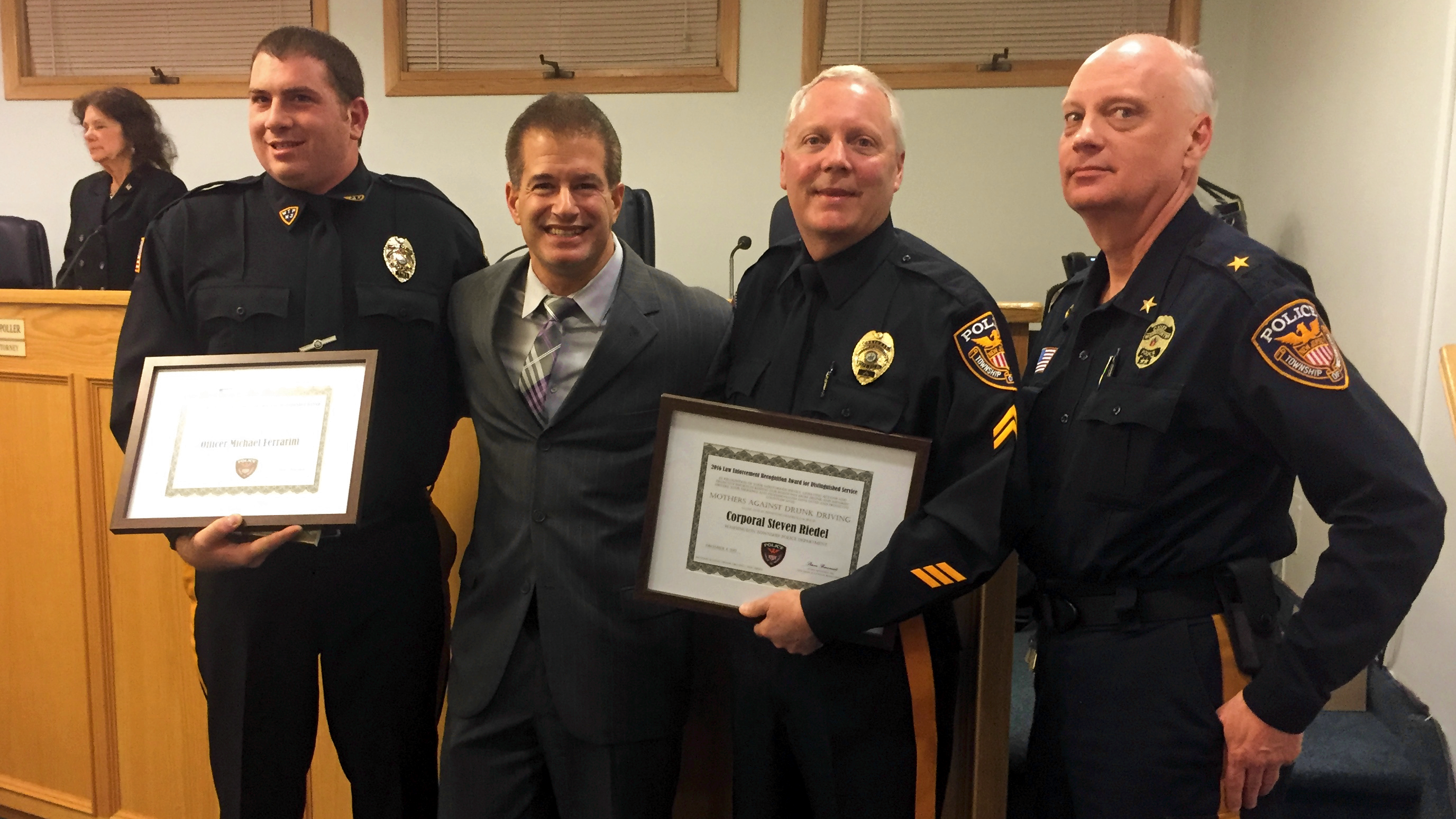 TOWNSHIP OF WASHINGTON, N.J. —— Two Township police officers, Cpl. Steven Riedel and Officer Michael Ferrarini, each have saved “at least one life—guaranteed” and in fact have saved generations of lives by keeping drunk drivers off the road.