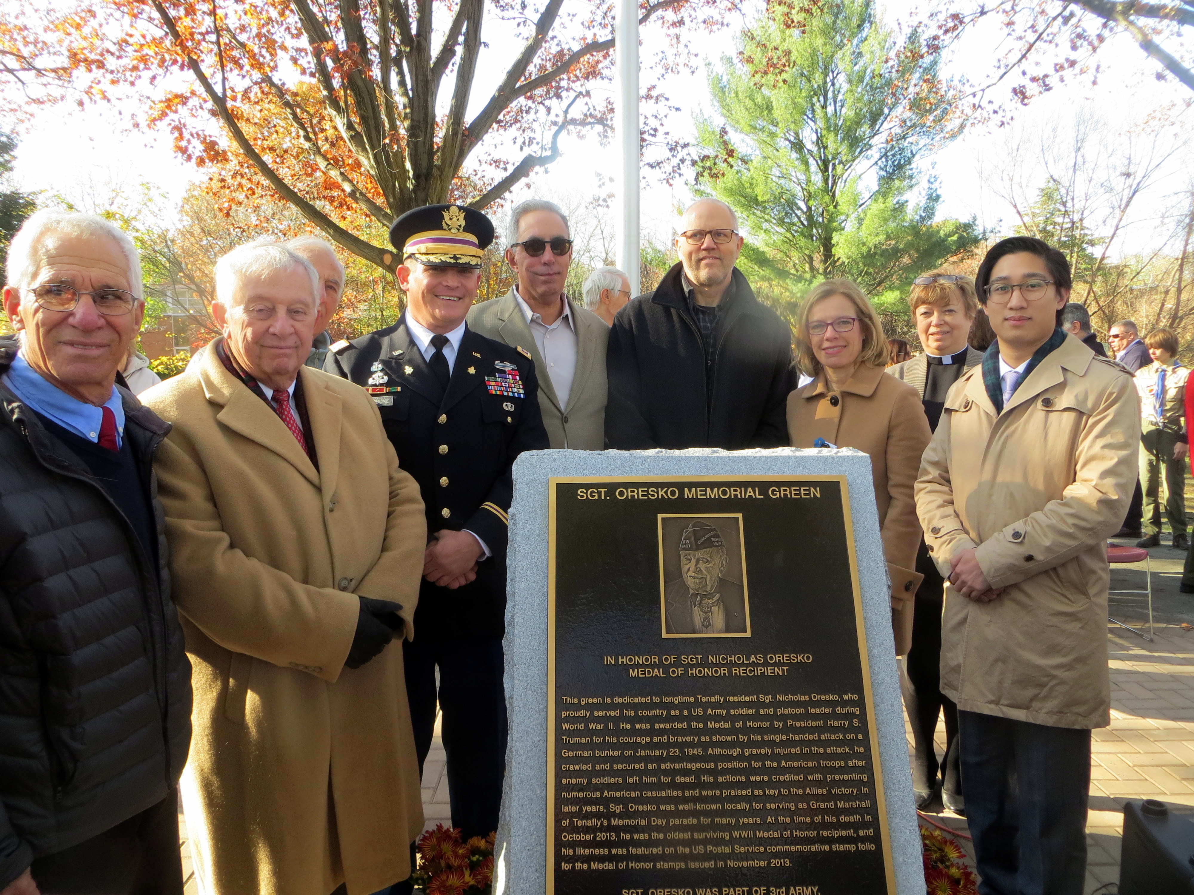 TENAFLY, N.J.—On Sunday, Nov. 11, Tenafly dedicated a newly refurbished park on Tenafly Road in the memory of Sgt. Nicholas Oresko, a longtime Tenafly resident and Medal of Honor recipient who died in 2013.