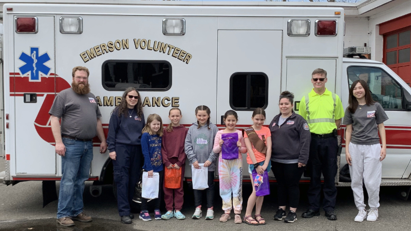EMERSON— Brownie Troop 97609 charmed the Emerson Volunteer Ambulance Corps (EVAC) on April 24 in a visit. The scouts toured the ambulance and learned from volunteers about the important things EVAC does when someone calls 9-1-1.