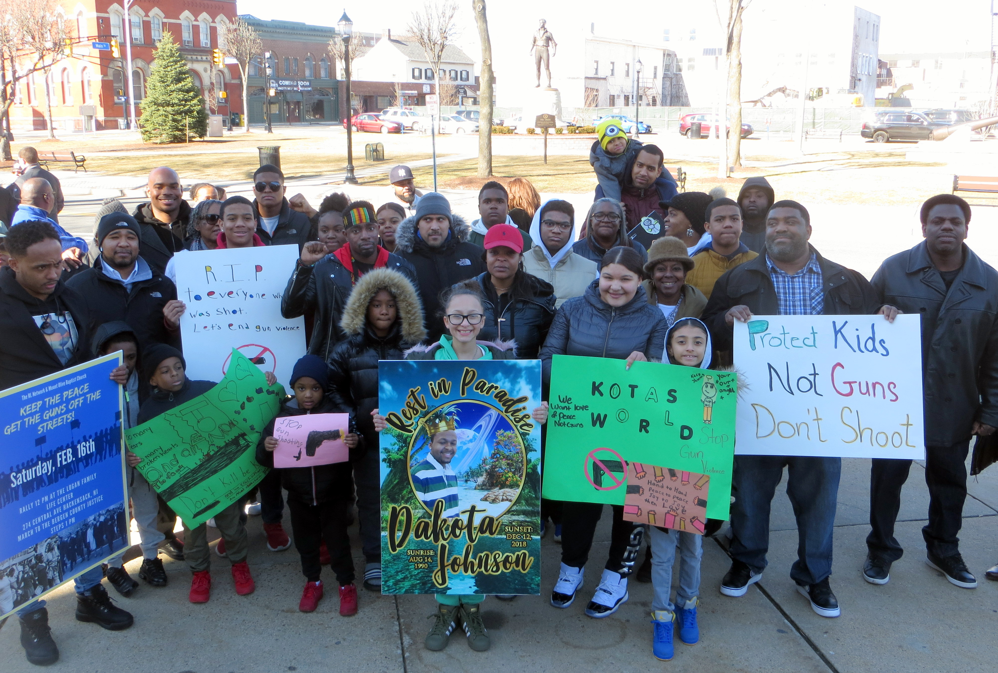 The peaceful protest, billed as “Keep the Peace, Get the Guns off the Streets,” was inspired by the recent shooting death of Dakota Johnson, a 28-year-old African American father of two, that occurred the night of Dec. 12, 2018 after a bar confrontation in Bogota.