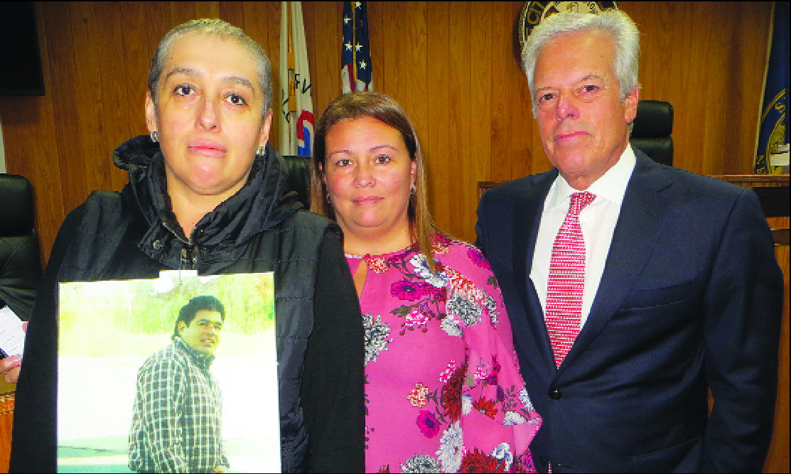 Claudia Castano then came to the podium to read the names of the Englewood residents who died in the World Trade Center bombing. As she has done every year, Castano wore a large color photo of her brother Alejandro Castano over her heart. Alejandro was 34 years old when he was killed in the World Trade Center bombing.